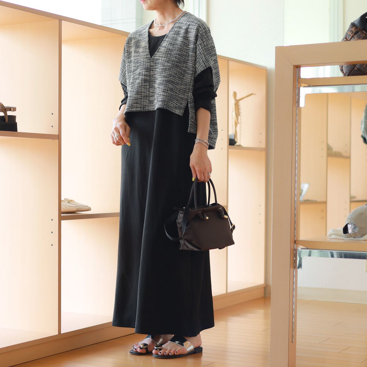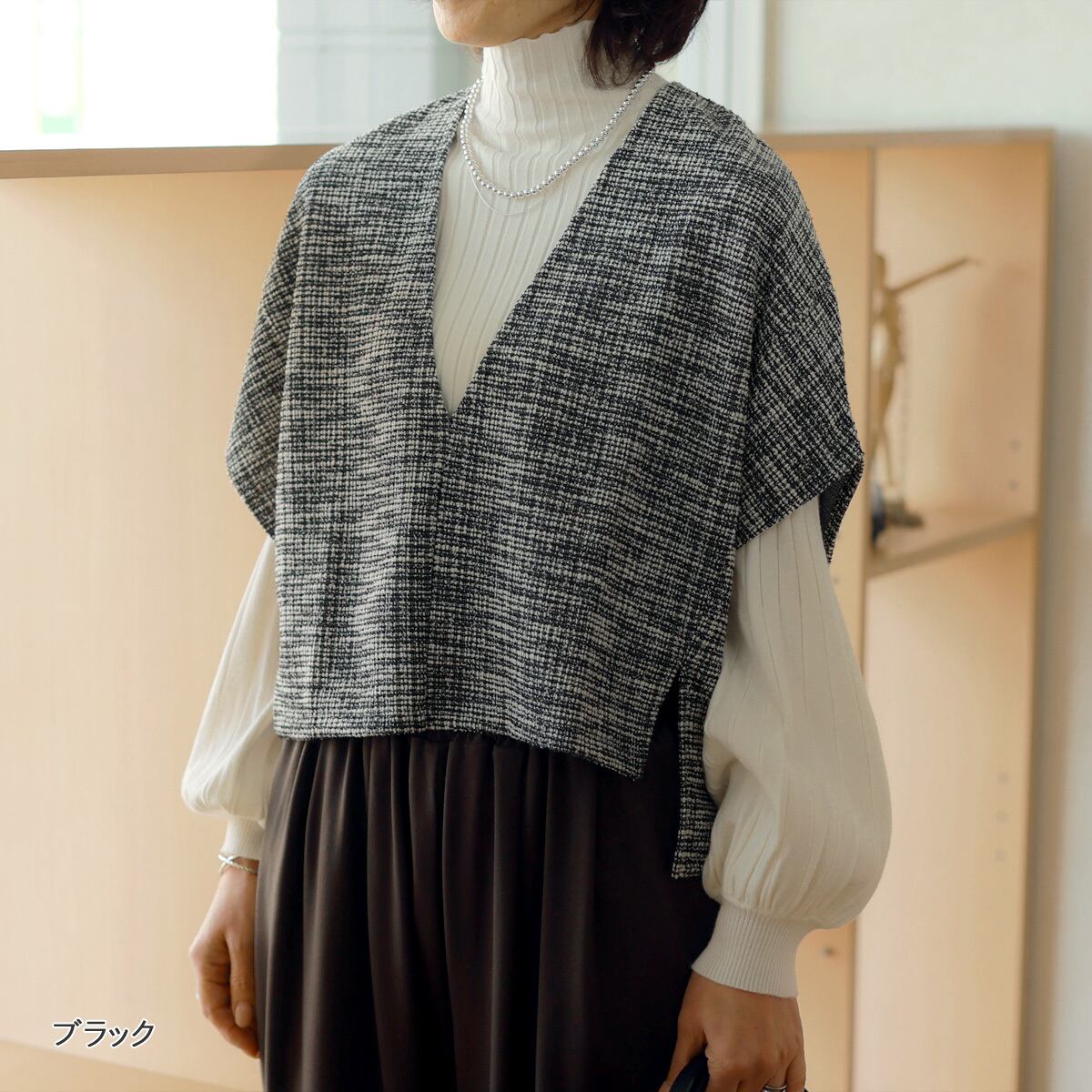 siro de labonte (シロ デラ ボンテ) エアリーツイードジャージ Vネック ルーミー ジレ