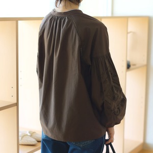 MICA&DEAL (マイカ&ディール) レースパフスリーブ バンドカラーシャツ