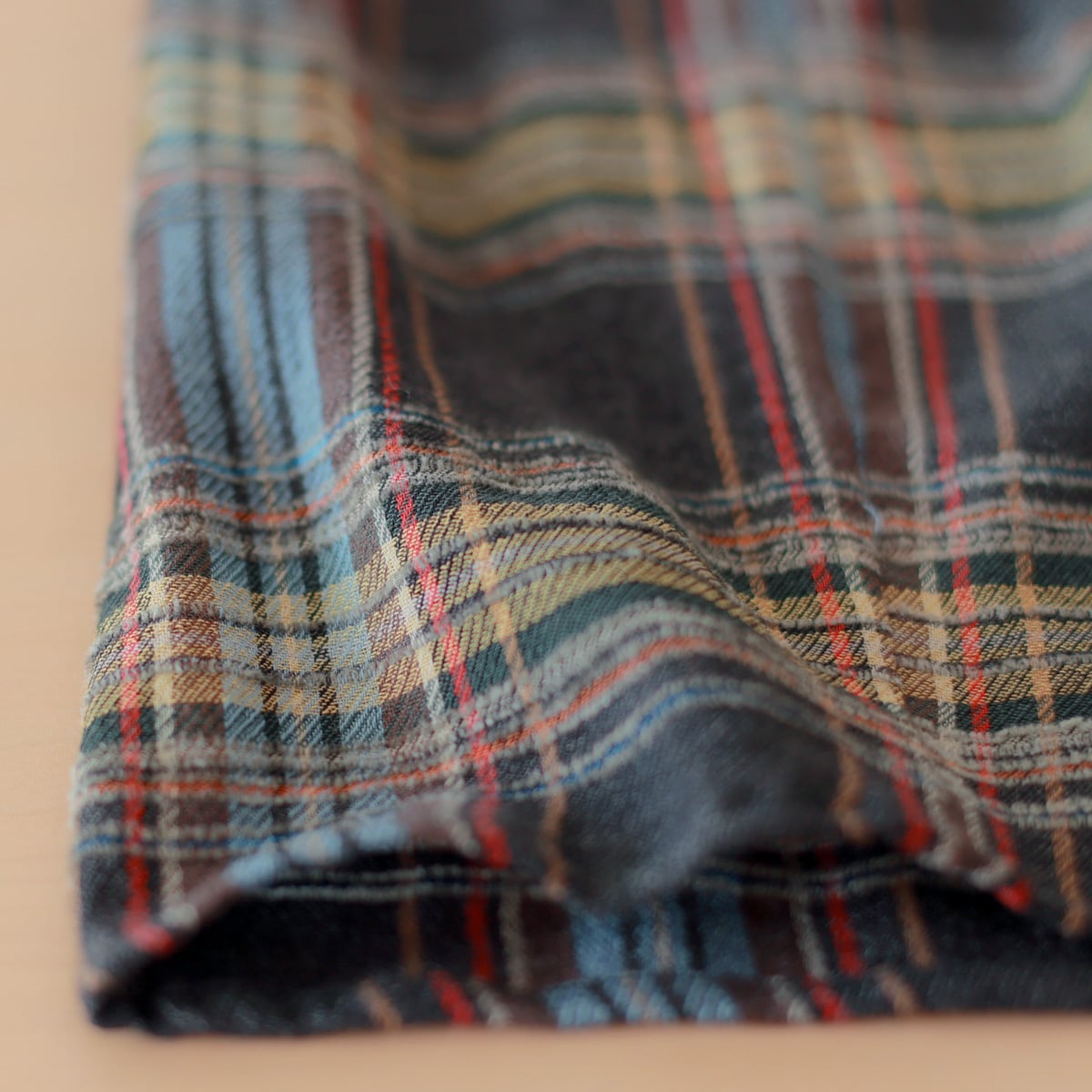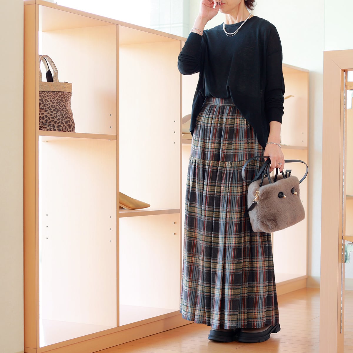 ワントーン落としたくすみ系チェック柄の一着は