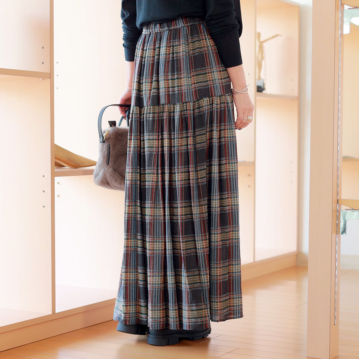 DOUBLE STANDARD CLOTHING (ダブルスタンダード クロージング) ニュアンスチェック ヨーク切り替え マキシスカート