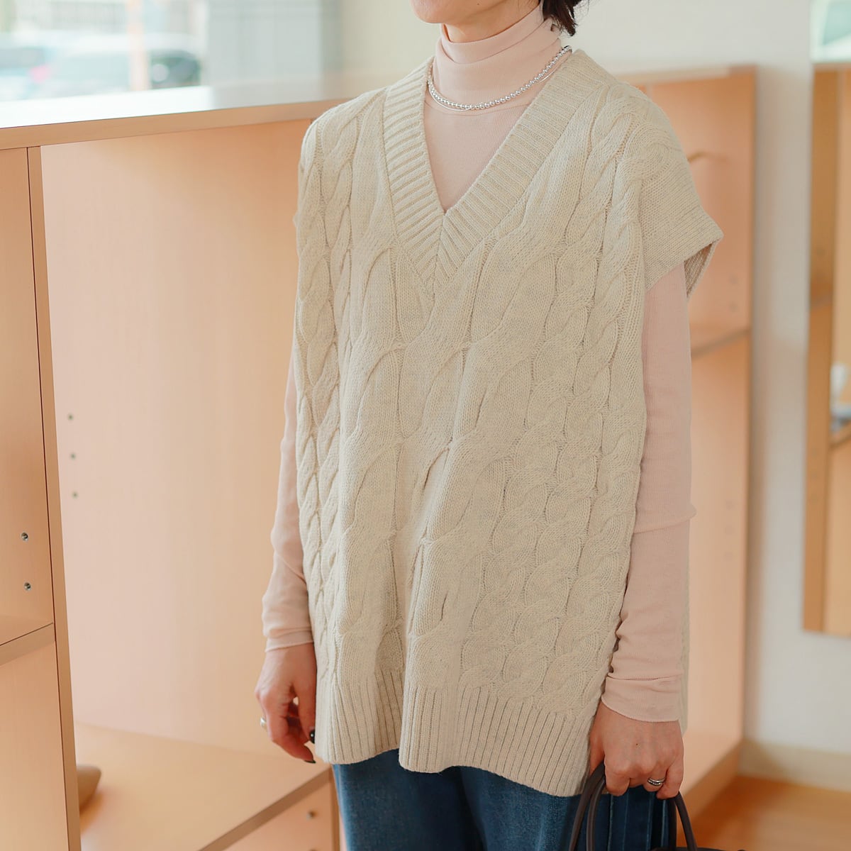 marmors (マルモア) ケーブル&ワッフル ルーミーニットジレ