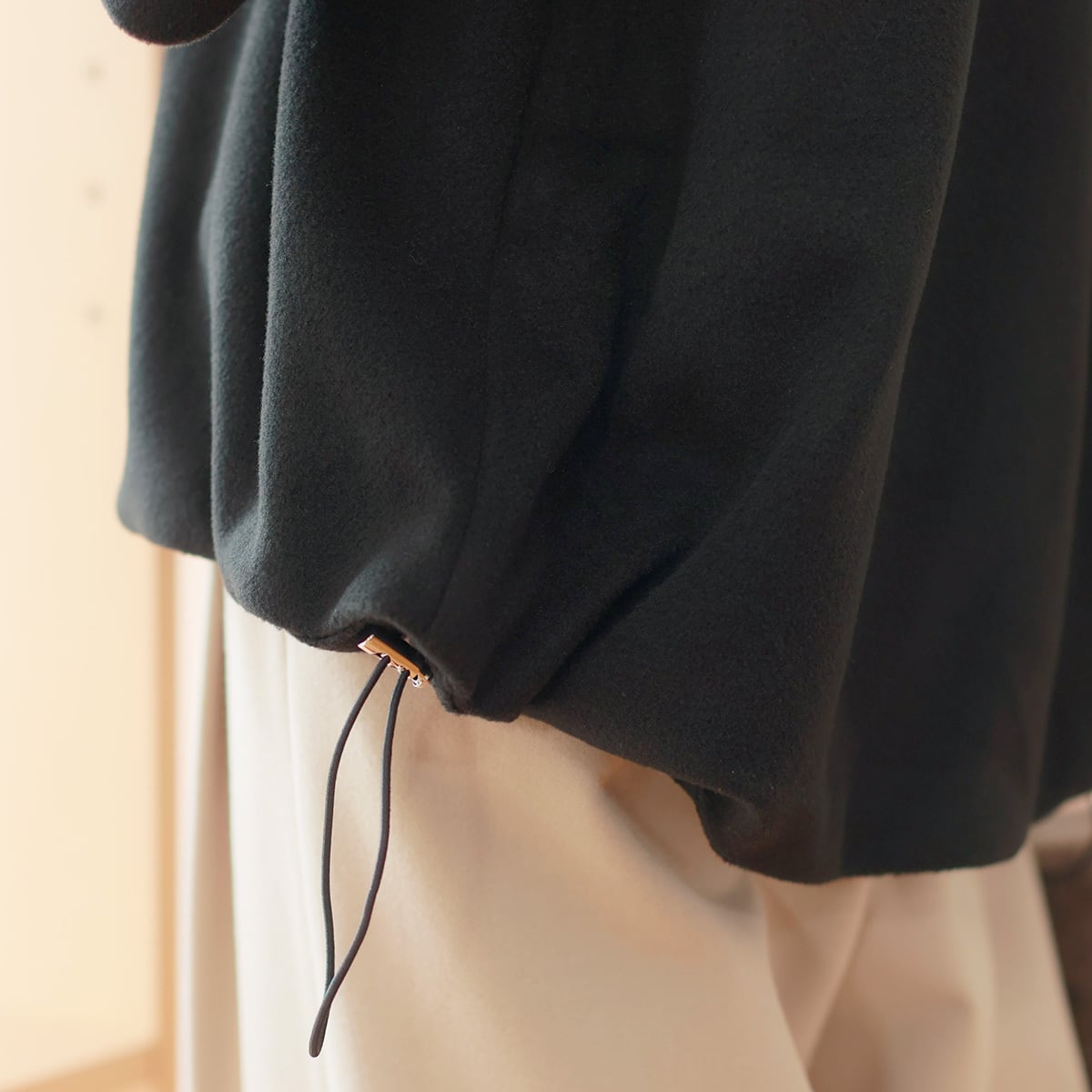 そしてドローコードでつくるギャザーヘムがポイント。