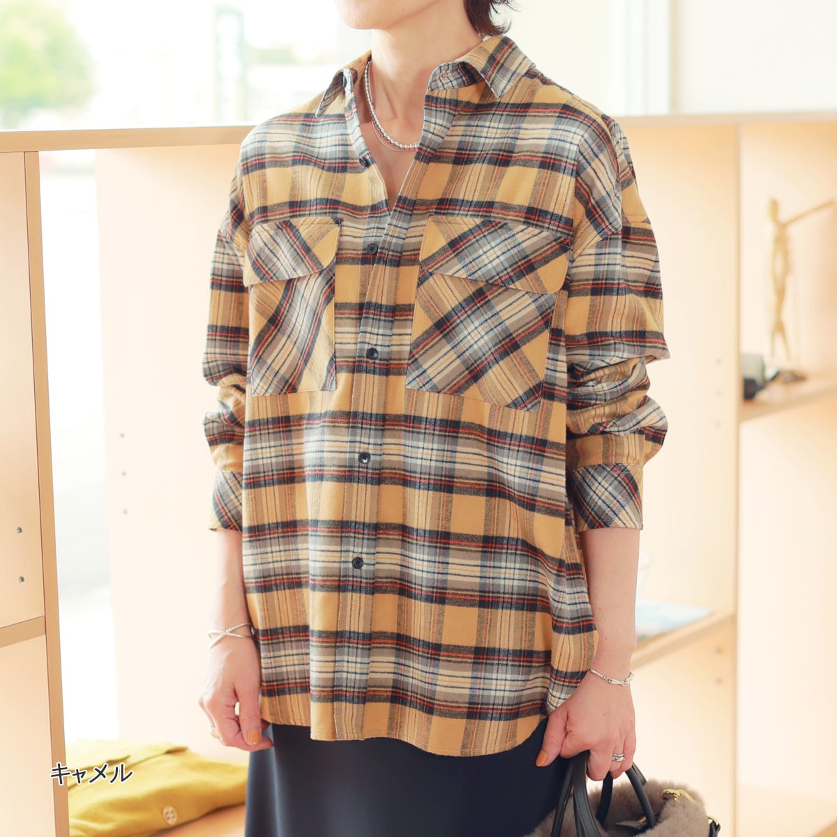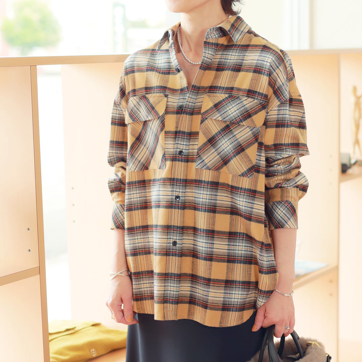 MANON (マノン) ライトネルチェック ルーミーシャツ