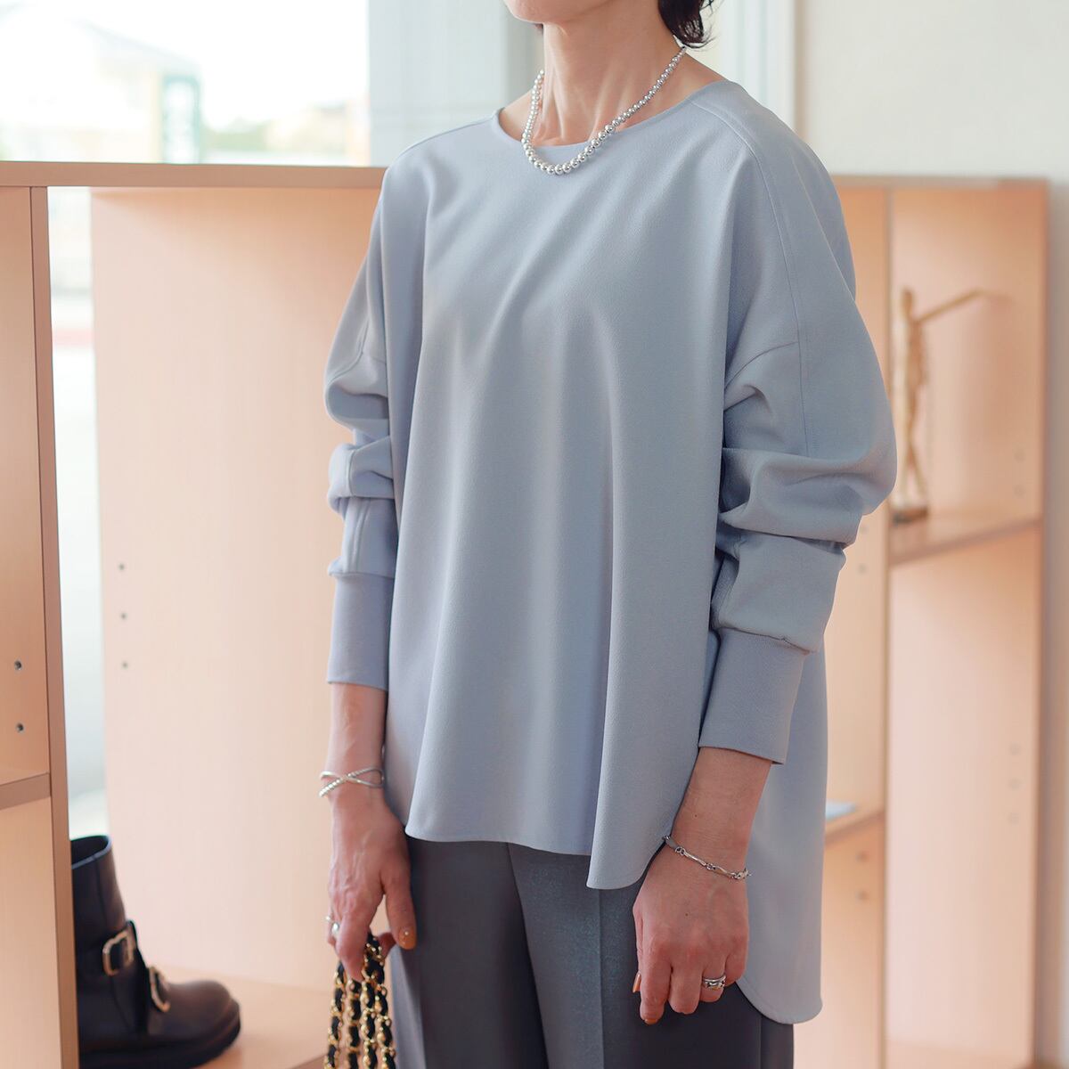 Dignite collier (ディニテ・コリエ) パウダリーツイル リブカフス Tブラウス