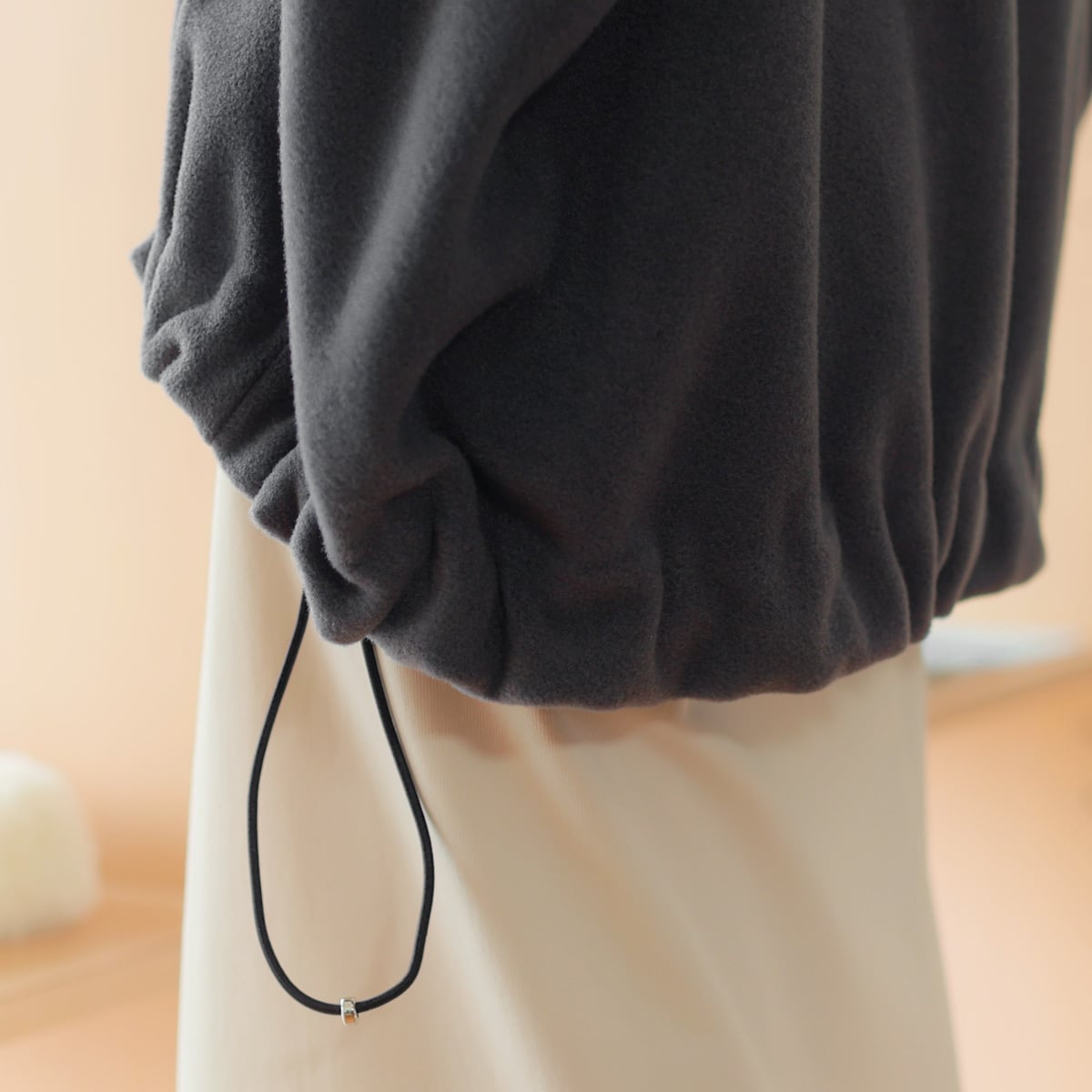 フロンとはクシュっとドレープと共に立ち上がるモックネック