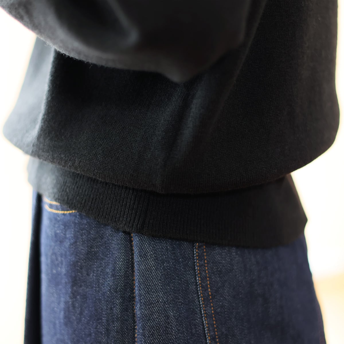 セットインショルダーと裾リブ切替で
