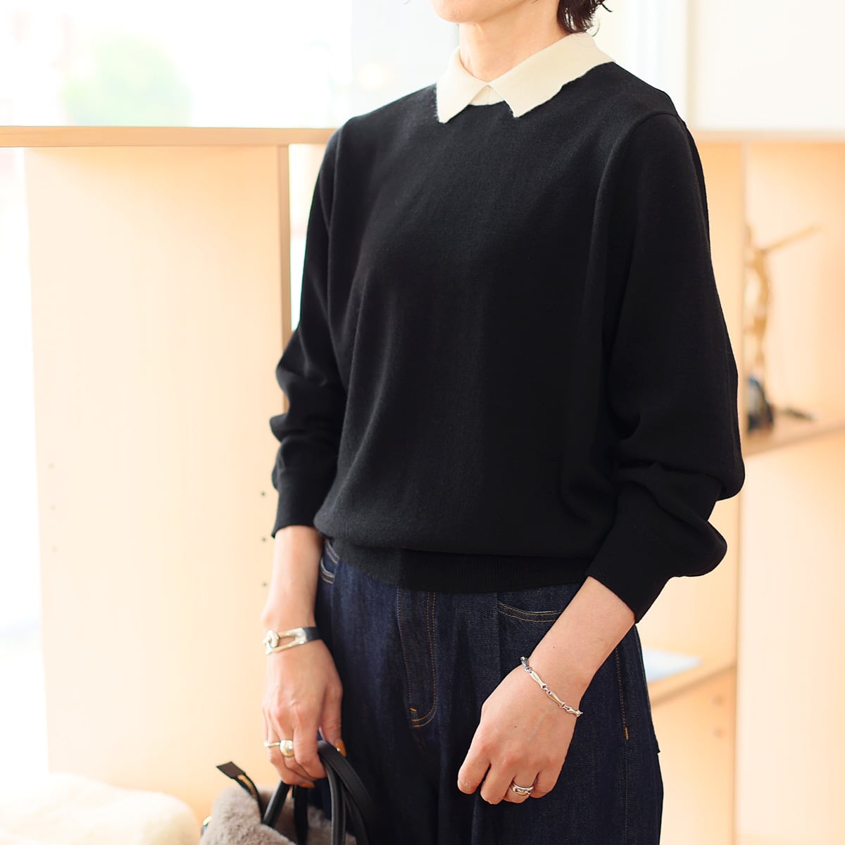 Le MARAIS (ル マレ) バイカラー メリノウール ポロニット