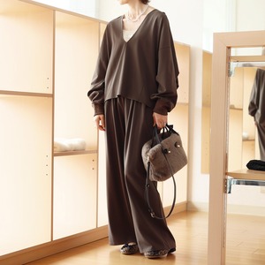 リラックスな穿き心地を併せ持ったワイドパンツ。