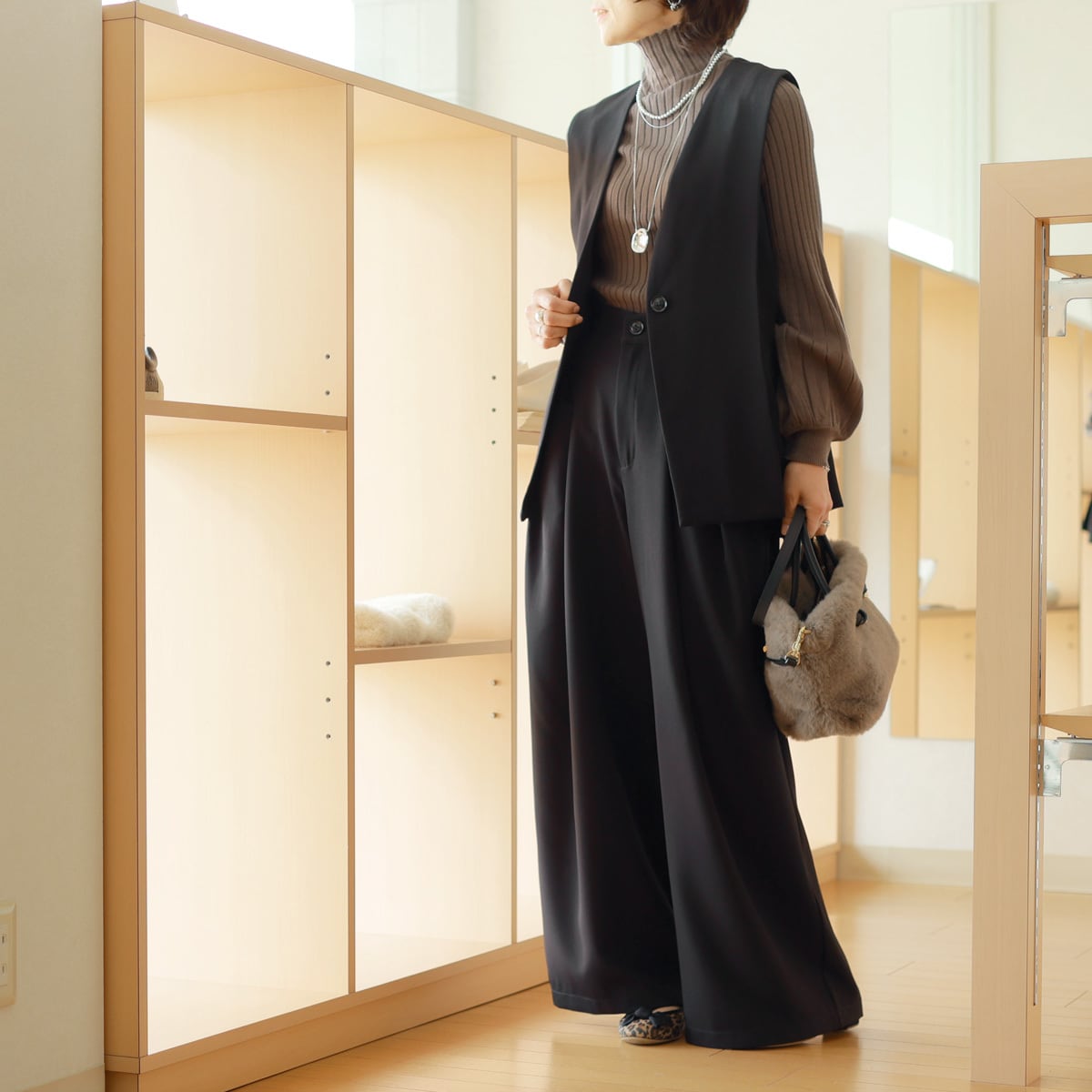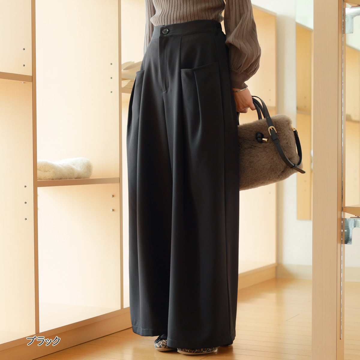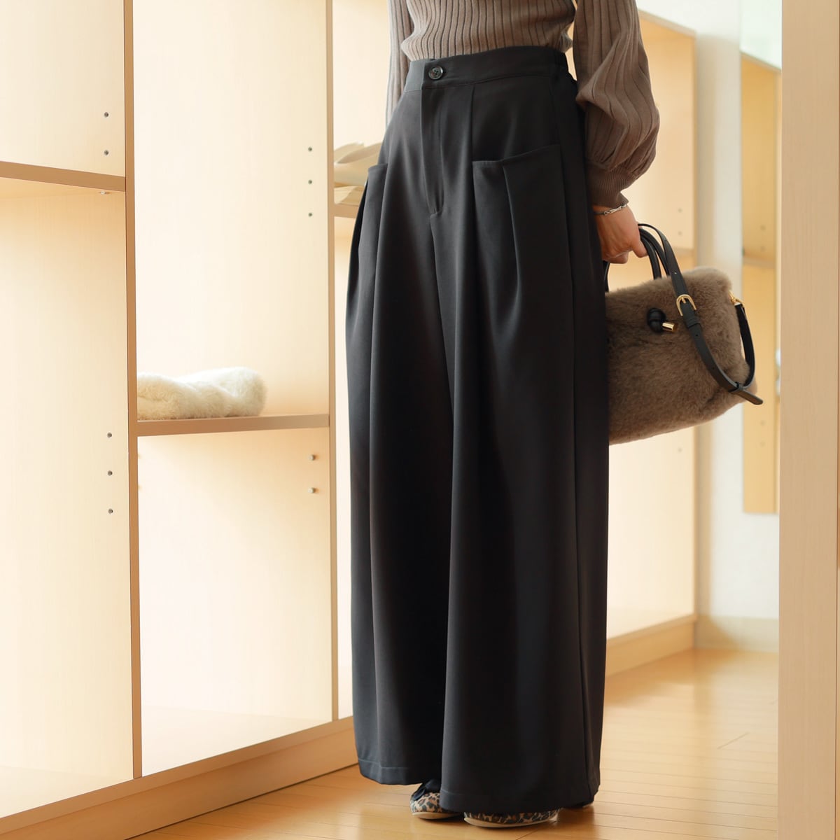そしてほんのりモード薫るワイドパンツ。