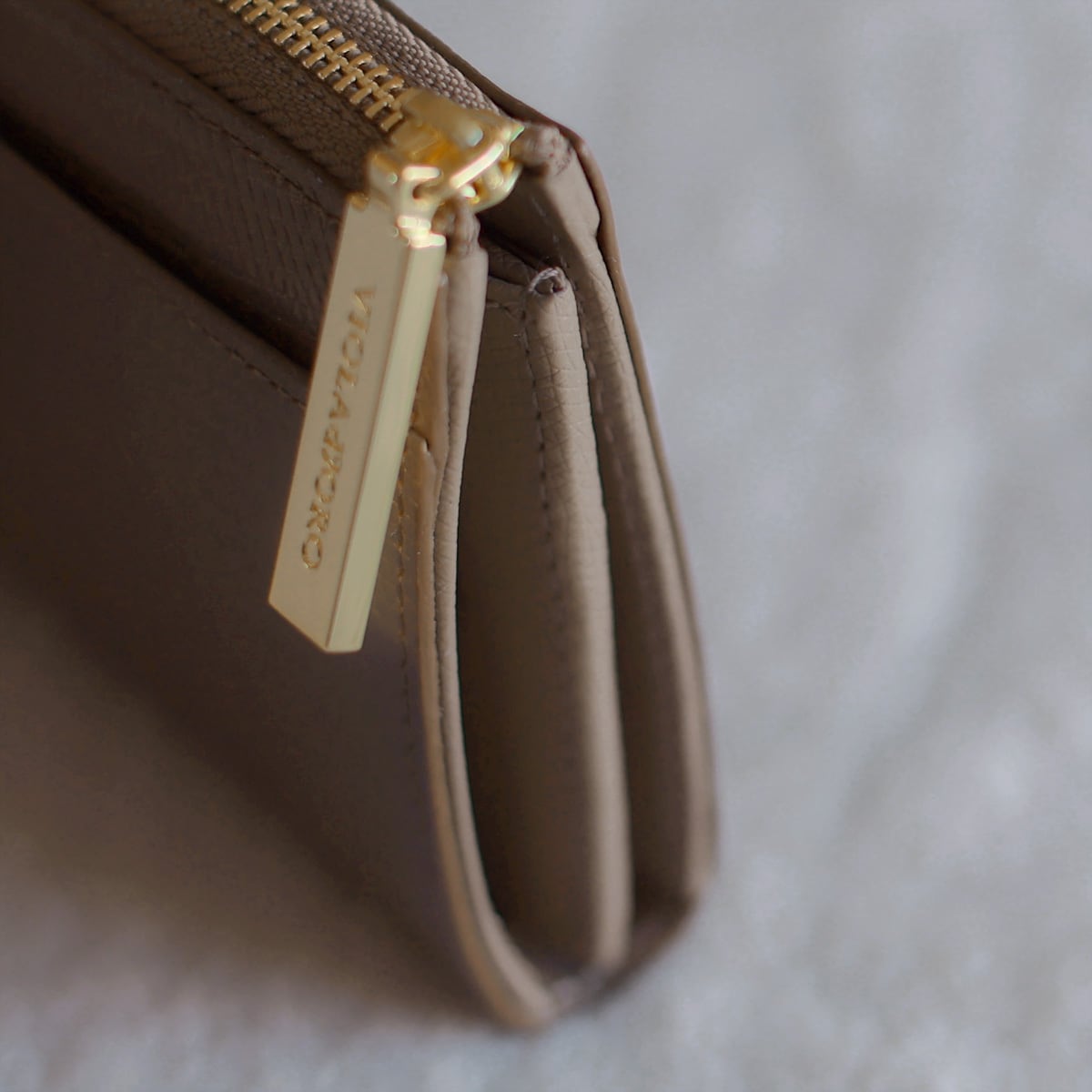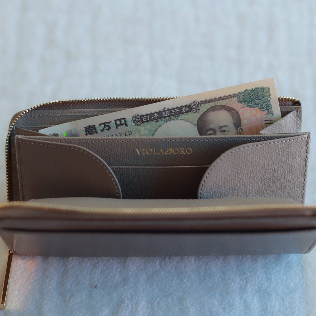 開閉のしやすいL字型ジッパーや大きなコインパート