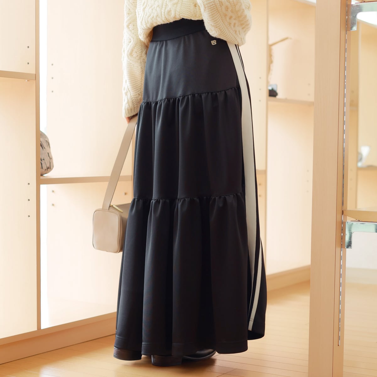 ESSENTIAL(エッセンシャル)セミダルジャージ サイドライン&ティアード スカート