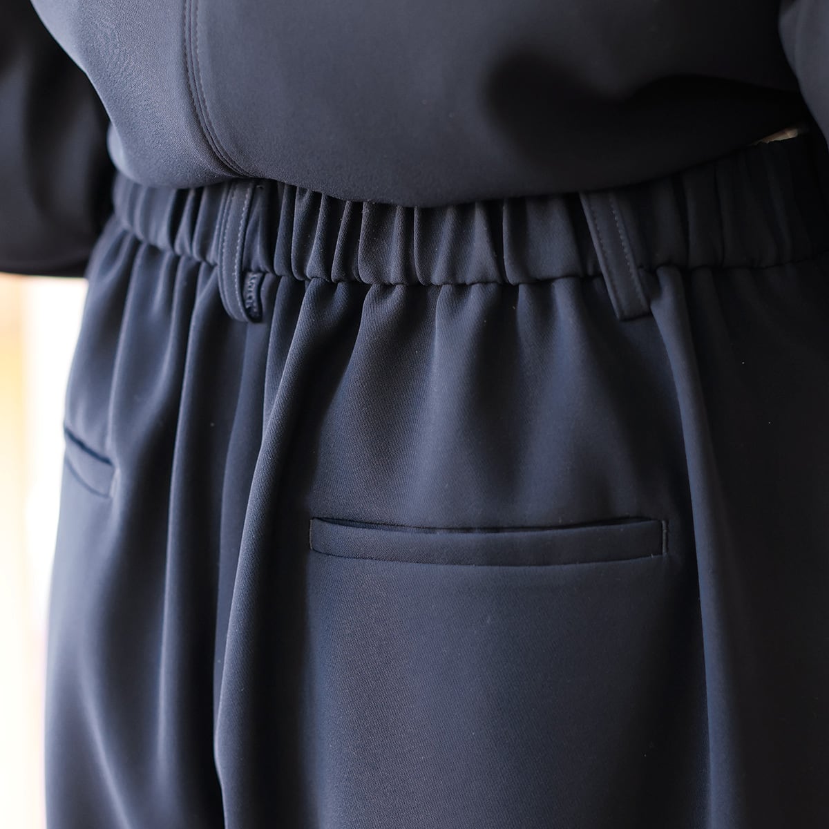 エラスティックウエストのワイドパンツを組み合わせる事で