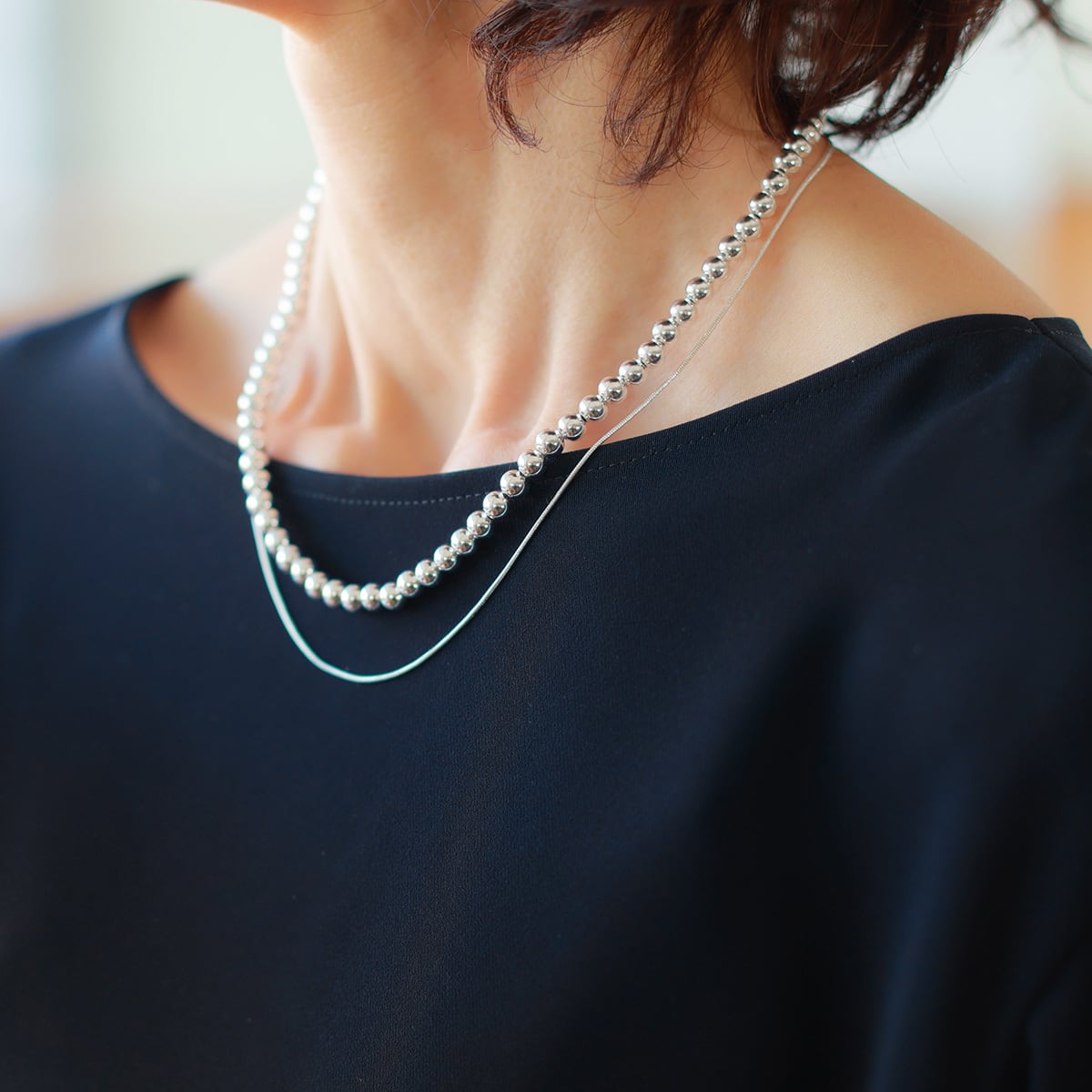 スッキリデコルテ見せるネックラインと