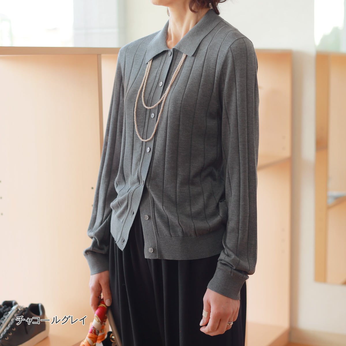 Tenue (テニュイ) フルボタンフロント 華奢見えポロニット