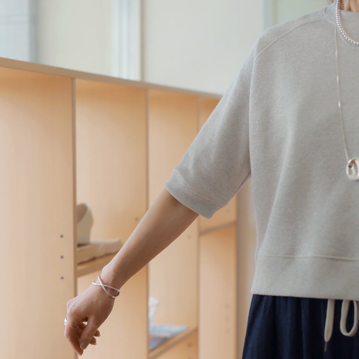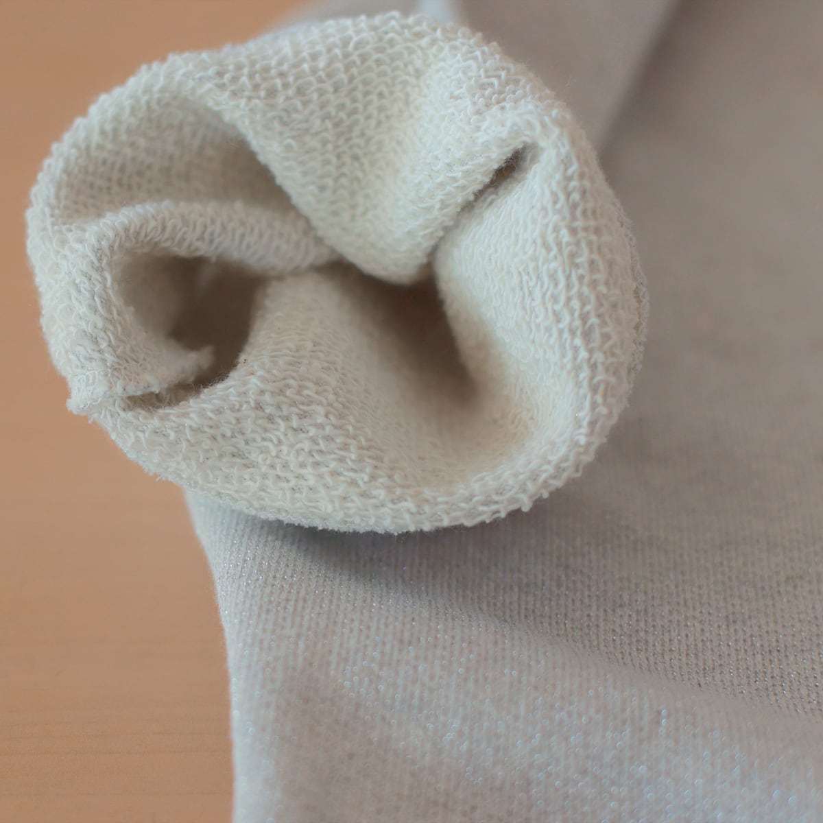 スウェット地を編む撚り糸にラメ糸をブレンドする事で