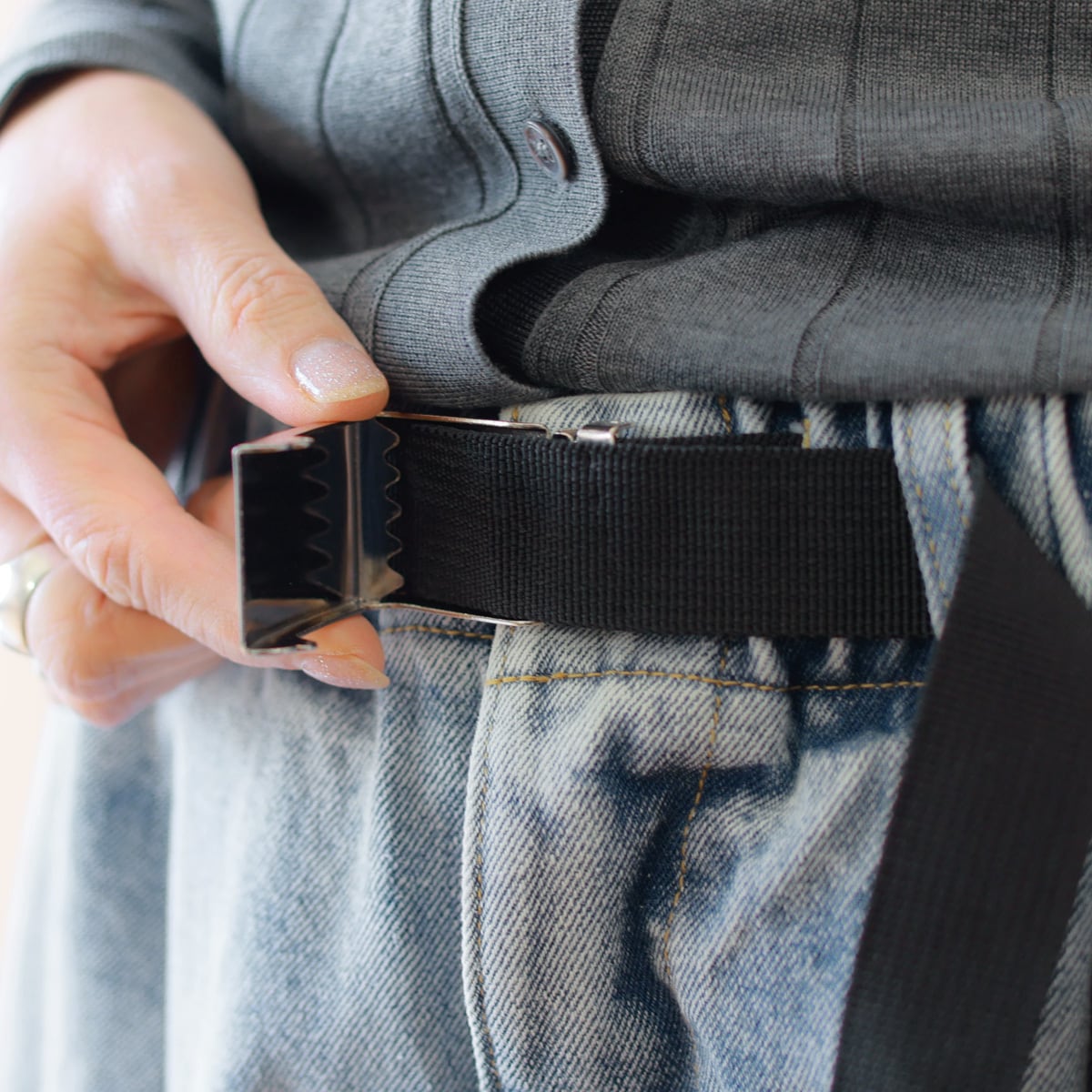 GIベルトでギュッと絞るウエストデザイン、
