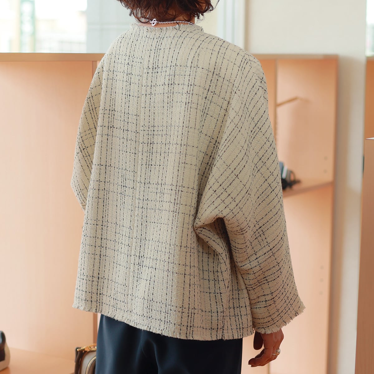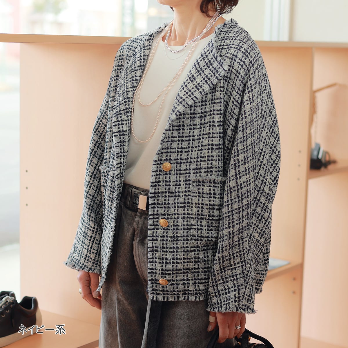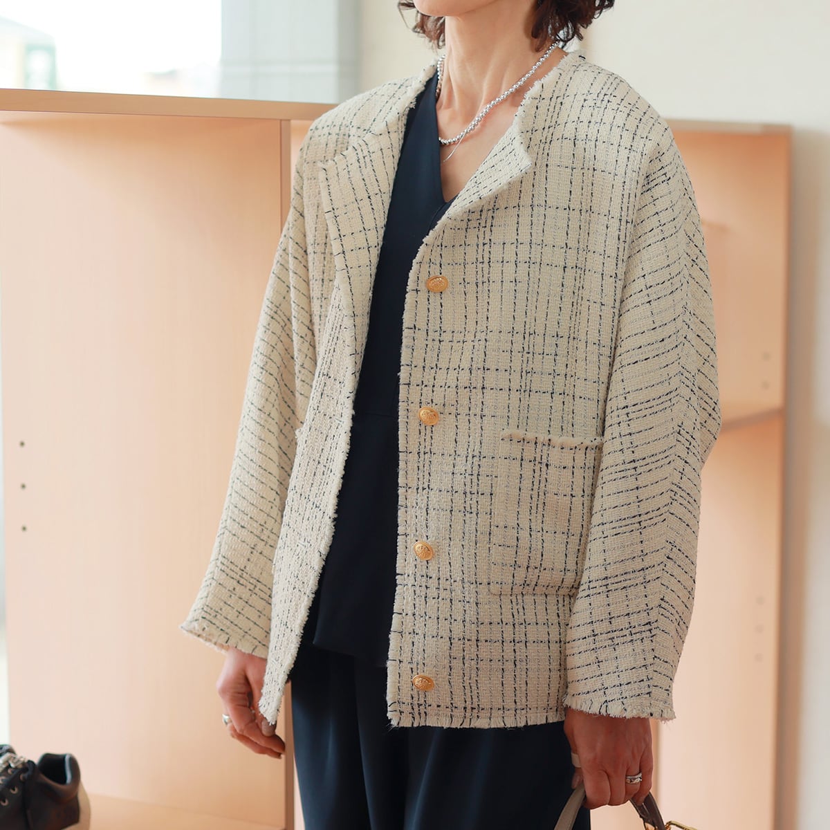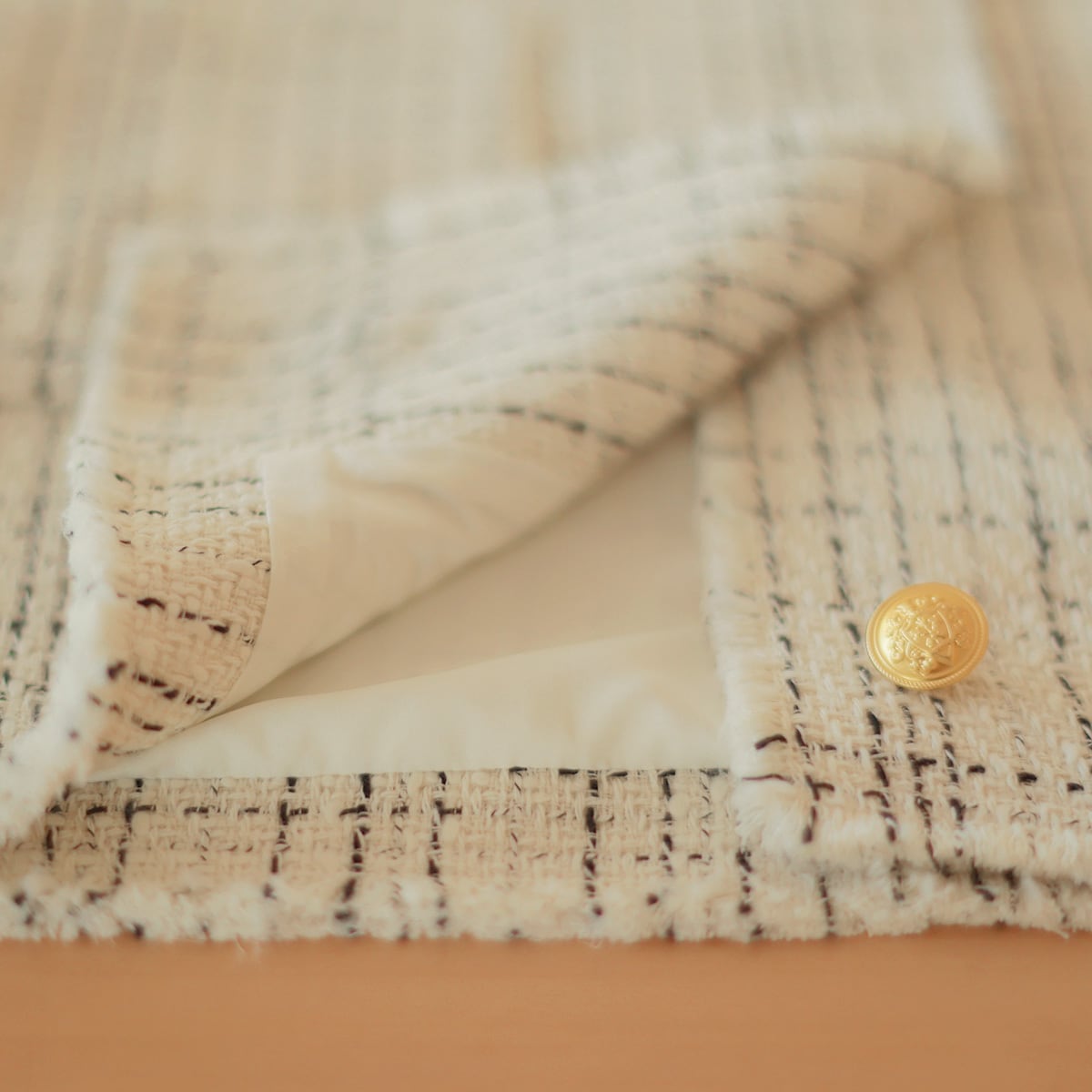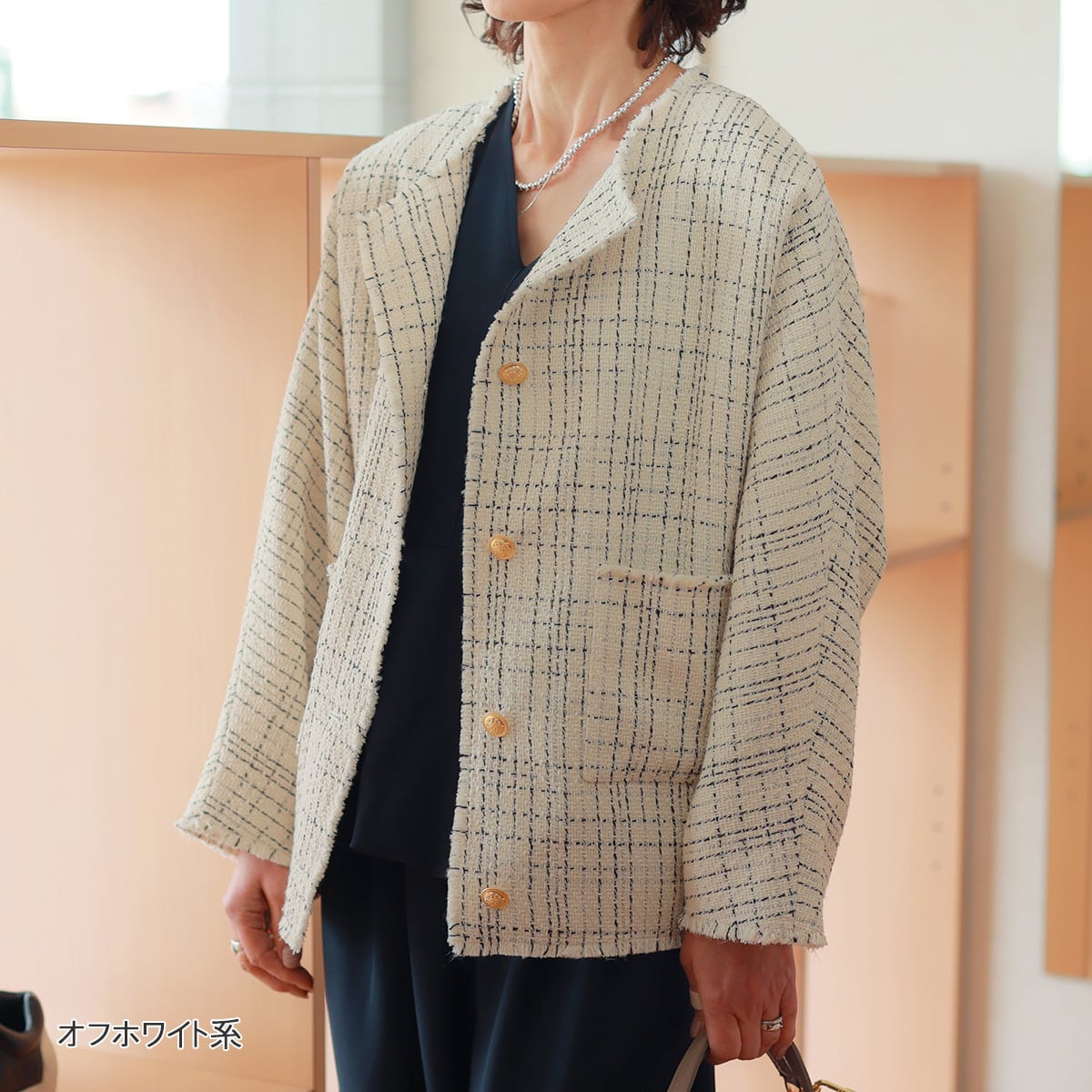 さっくり軽やかな甘織りツイード素材を、
