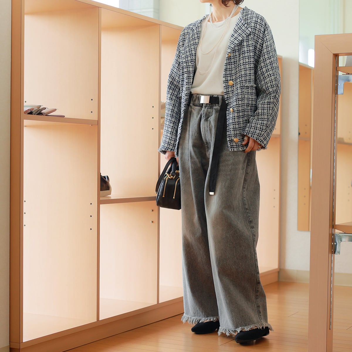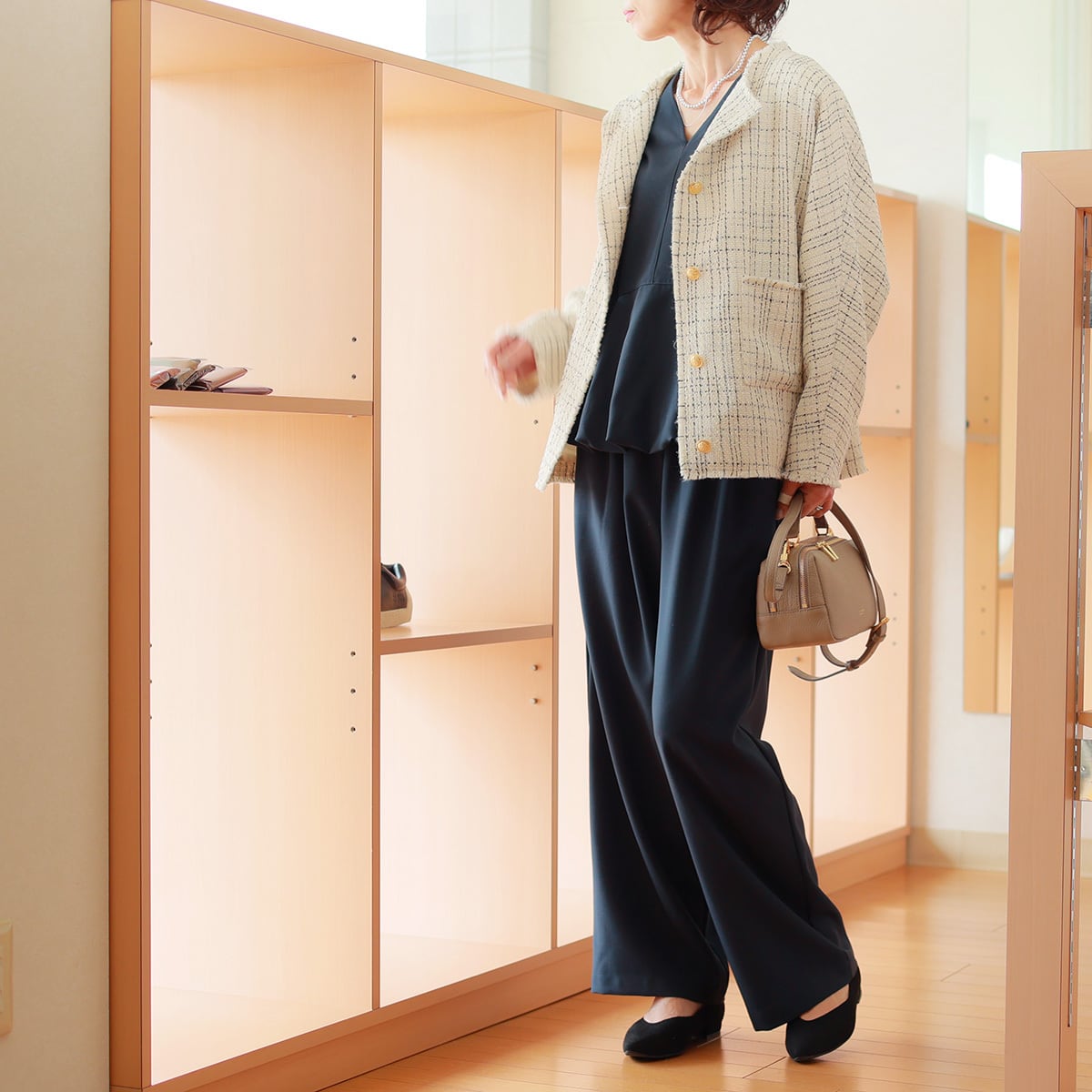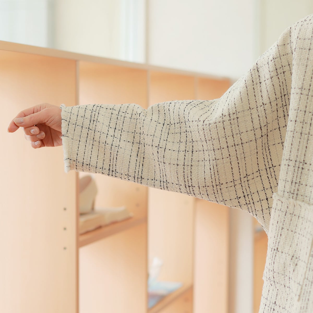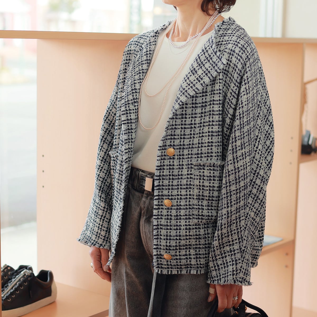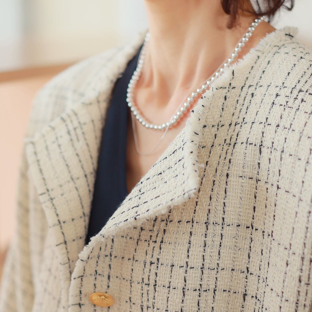 さっくり軽やかな甘織りツイード素材を、