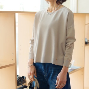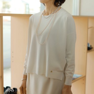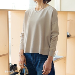 ユル華奢見せなニットトップス。