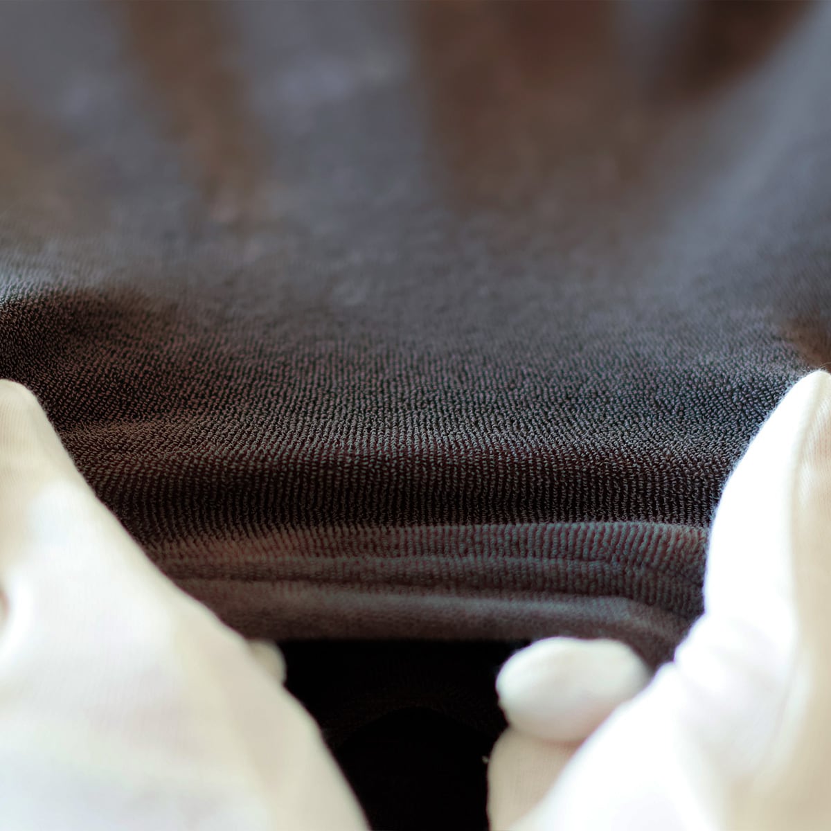 スウェットとは違うラグジュアリーなカジュアルさも魅力。