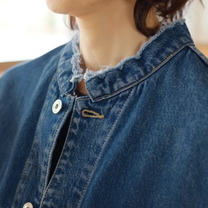 フリンジ仕上げのスタンドカラーと