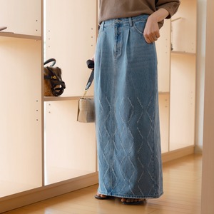 YENN (イエン) モロッカンタイル柄 デニム マキシスカート LASER CUT DENIM SK