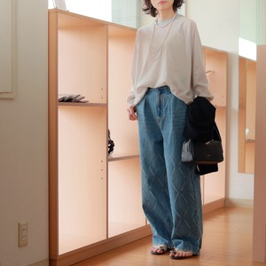 YENN (イエン) コットンチュール グリッターリブ切り替え ルーミートップス