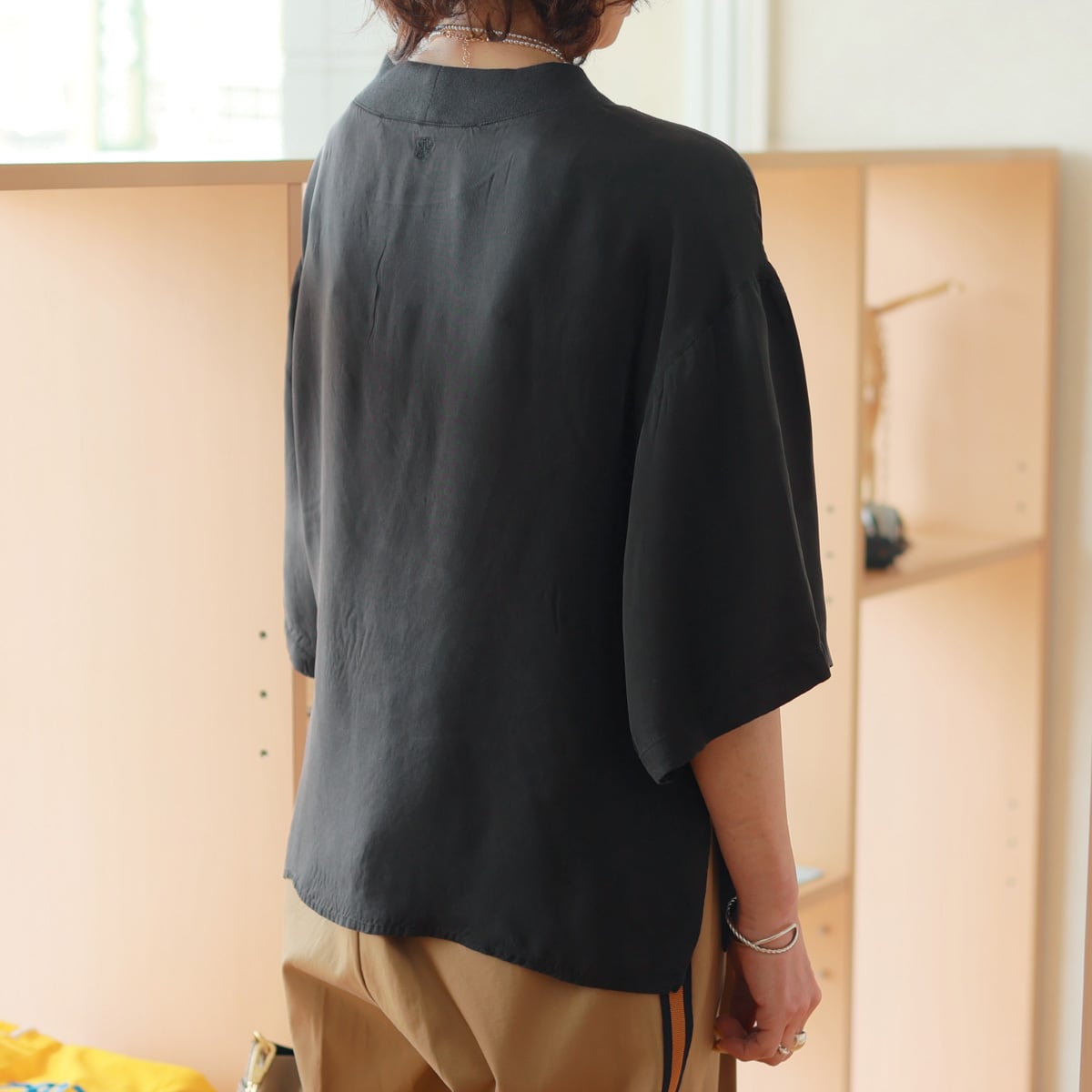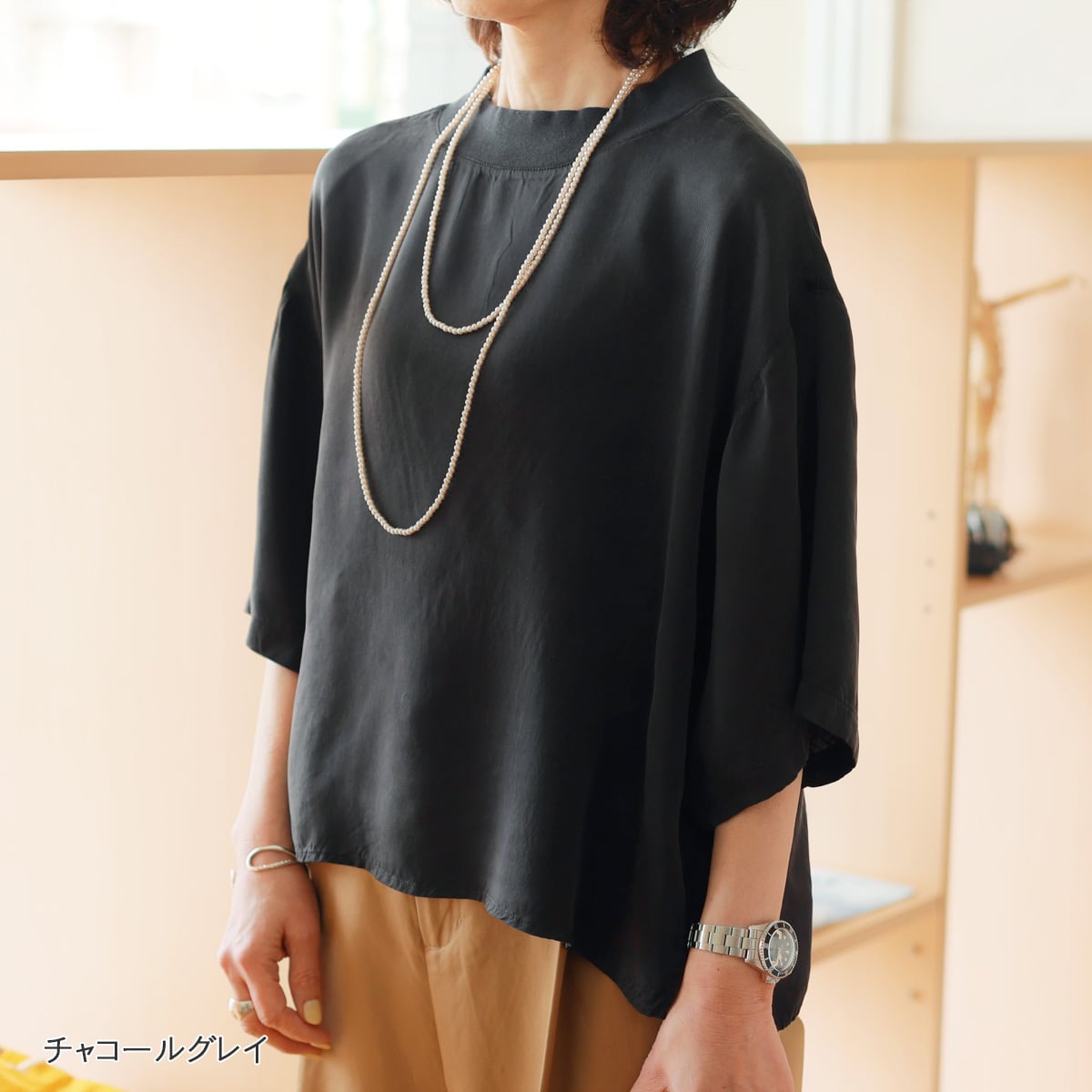 TICCA (ティッカ) キュプラ サテン リブ衿ブラウス