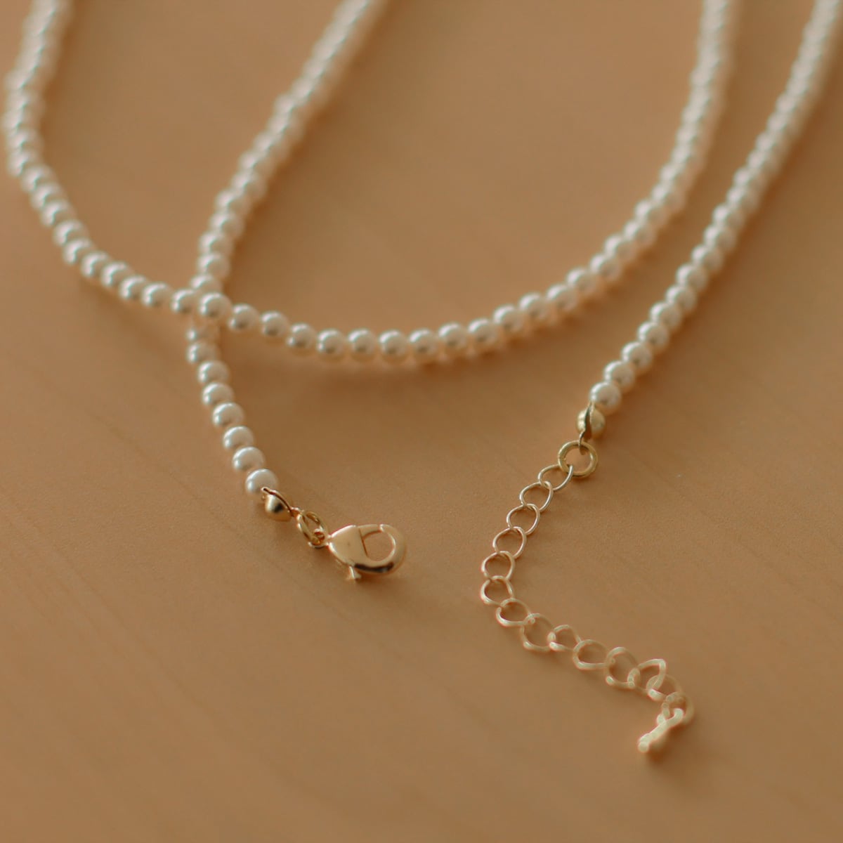 小粒フェイクパールのネックレス。