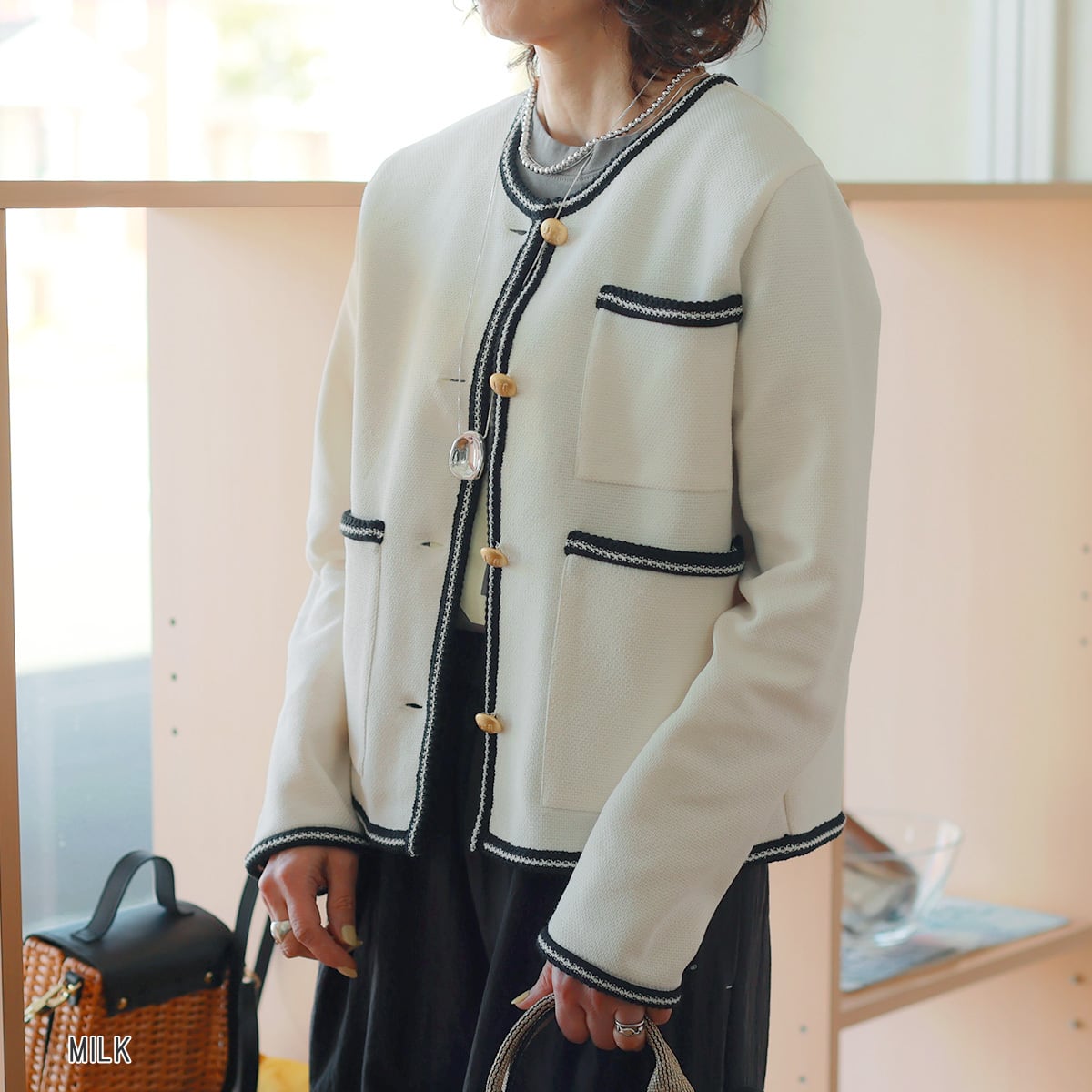 ADAWAS (アダワス) バイカラー カラーレス ジャケット with マットメタルボタン