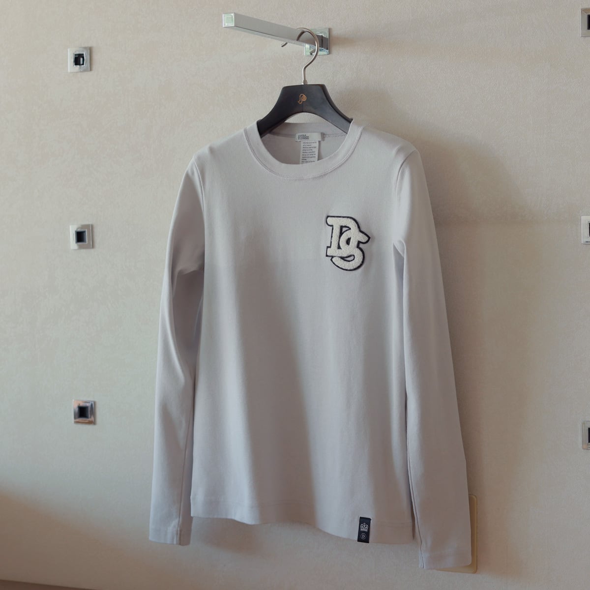 ブランドの頭文字「DS」をあしらったパイルワッペンが