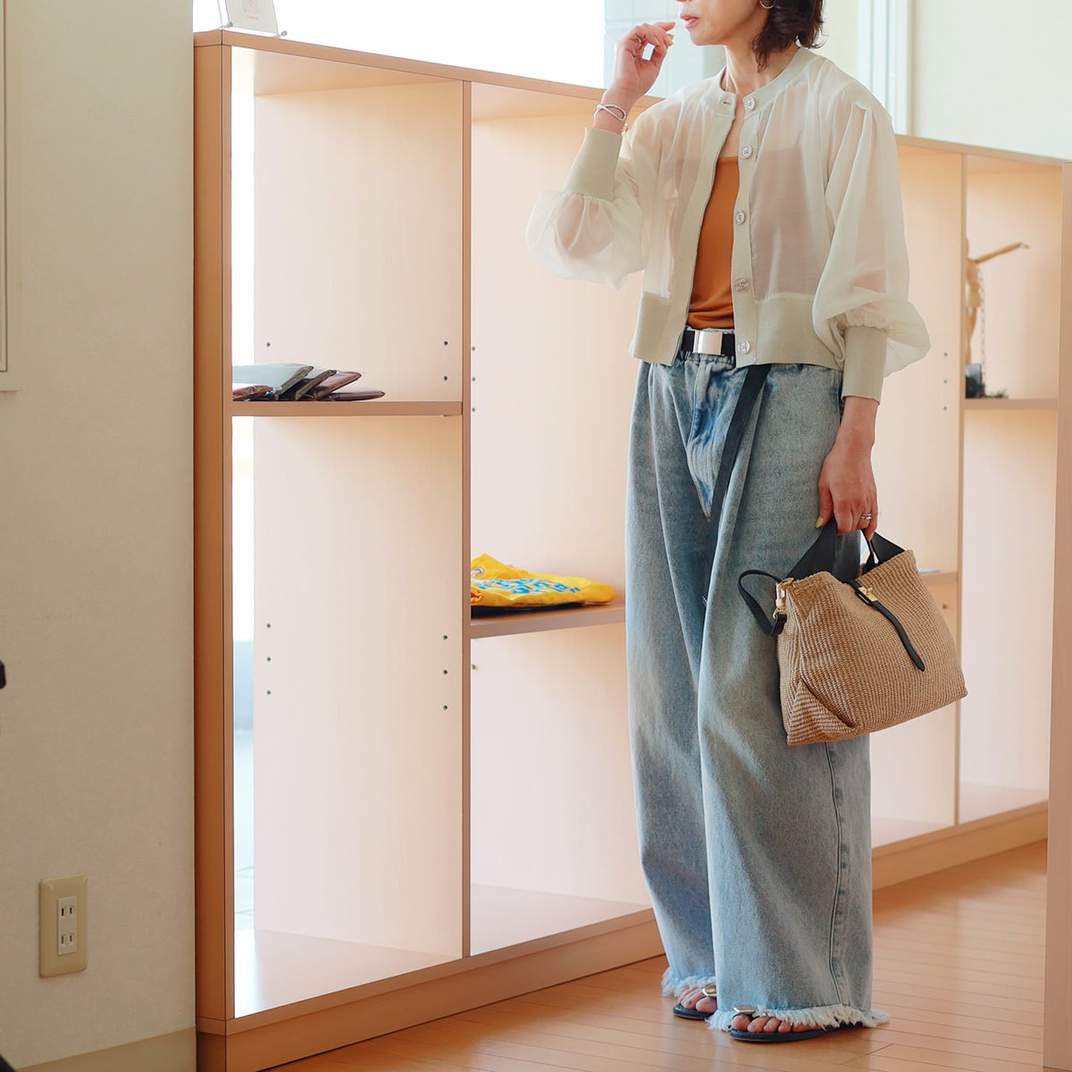 ワイドパンツやボリュームのあるスカートを