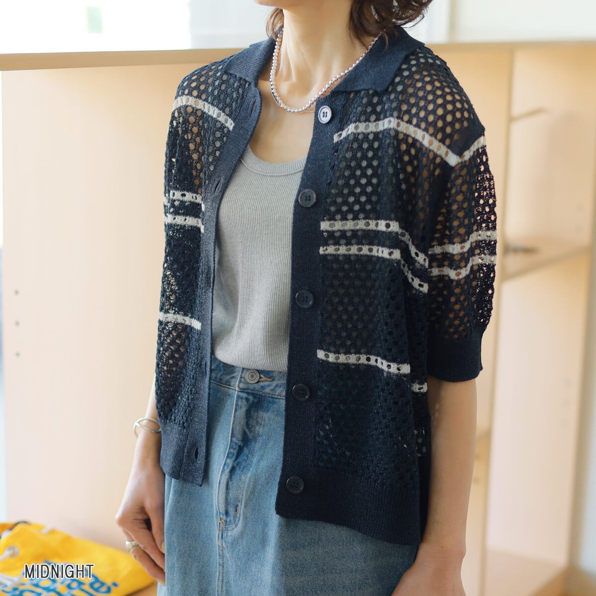 ADAWAS (アダワス) ランダムメッシュ ボーダー ポロカーディガン