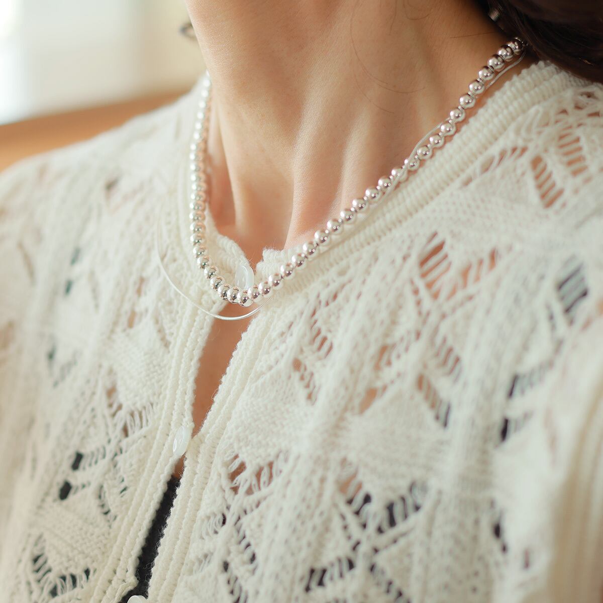 軽やかな涼感を併せ持ったレース素材。