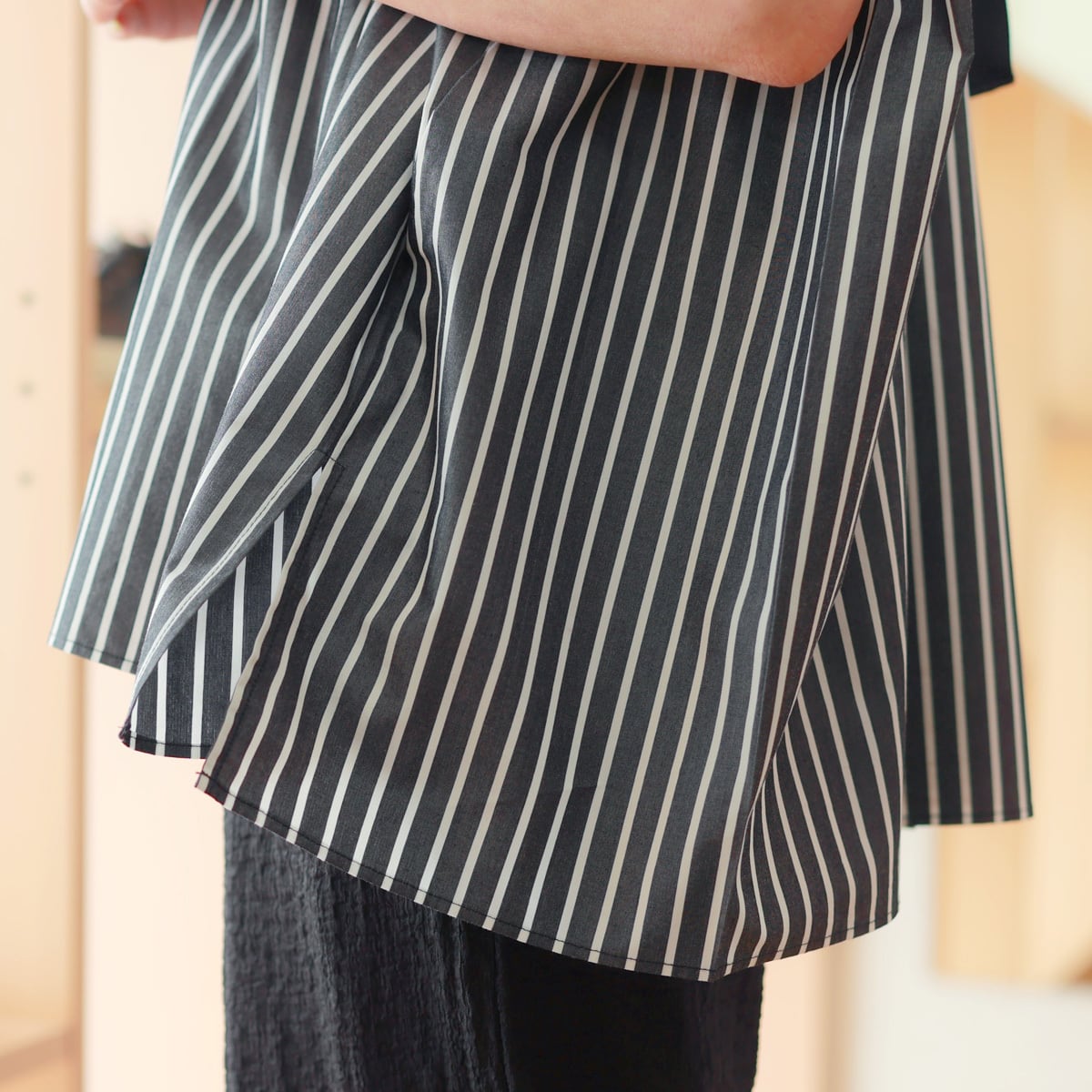 ボディーラインを拾い難い生地の適度なハリ感も使えるポイントです。