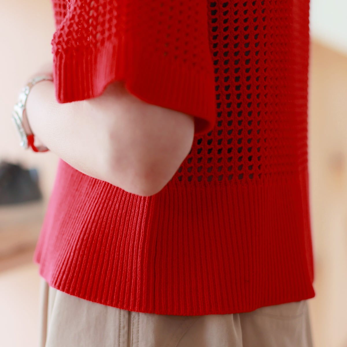サックリ肌触りも軽いメッシュニットで仕立てた一着は