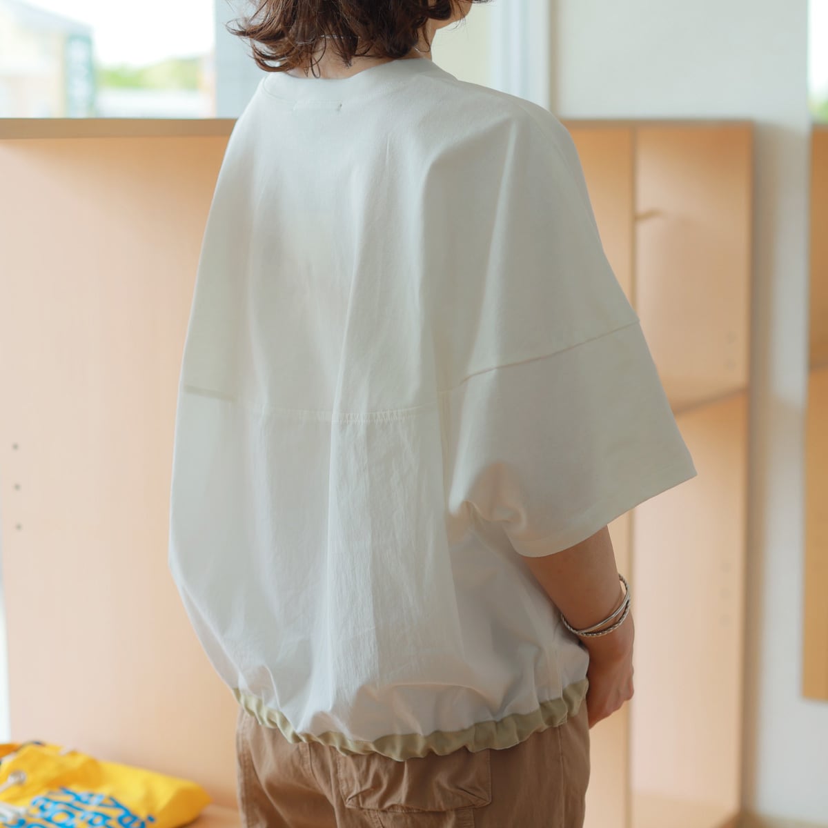 自由なギャザー分量と配色で魅せるドローコードヘム。