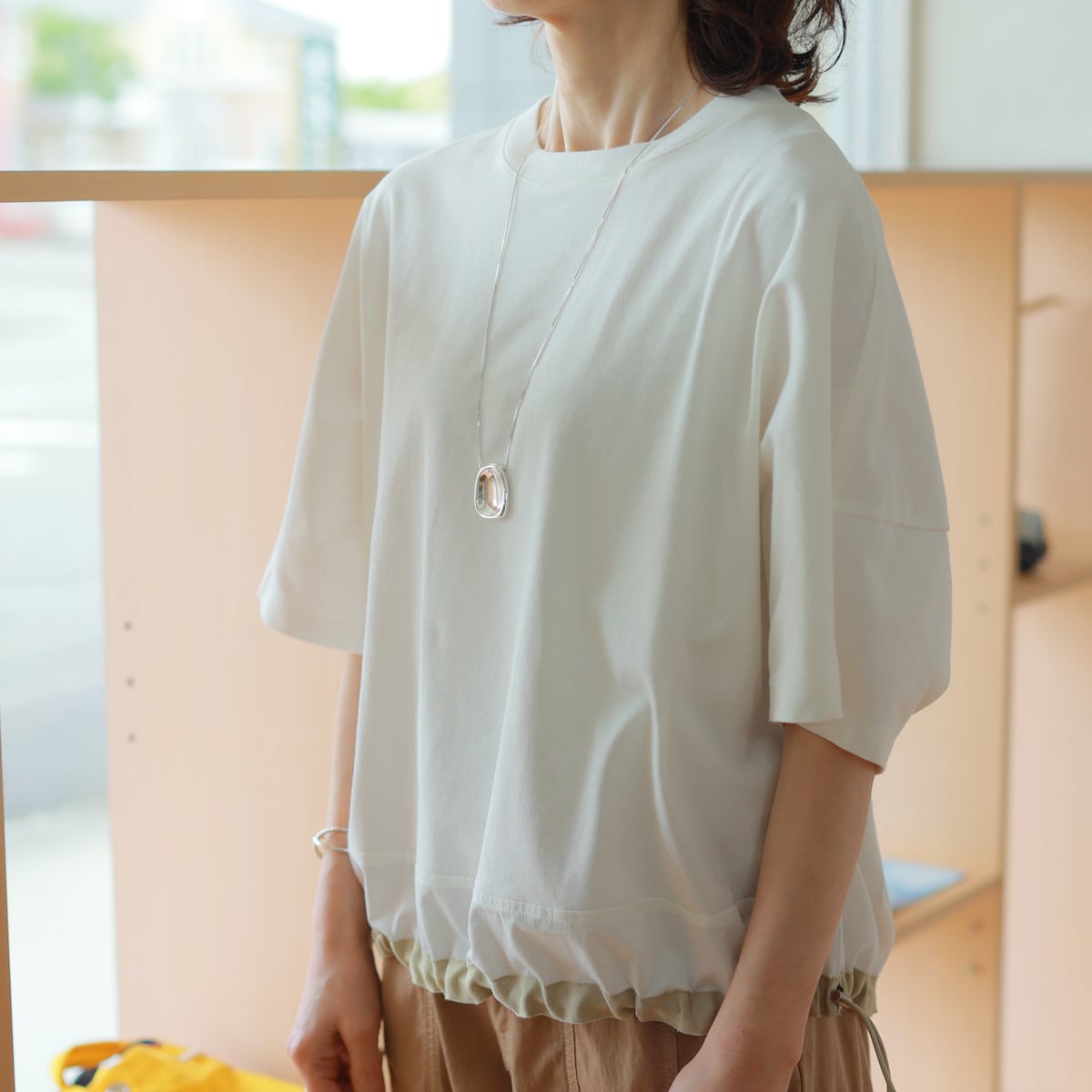 Munich (ミューニック) 配色ドローコードヘム 異素材ドッキング コクーンカットソー