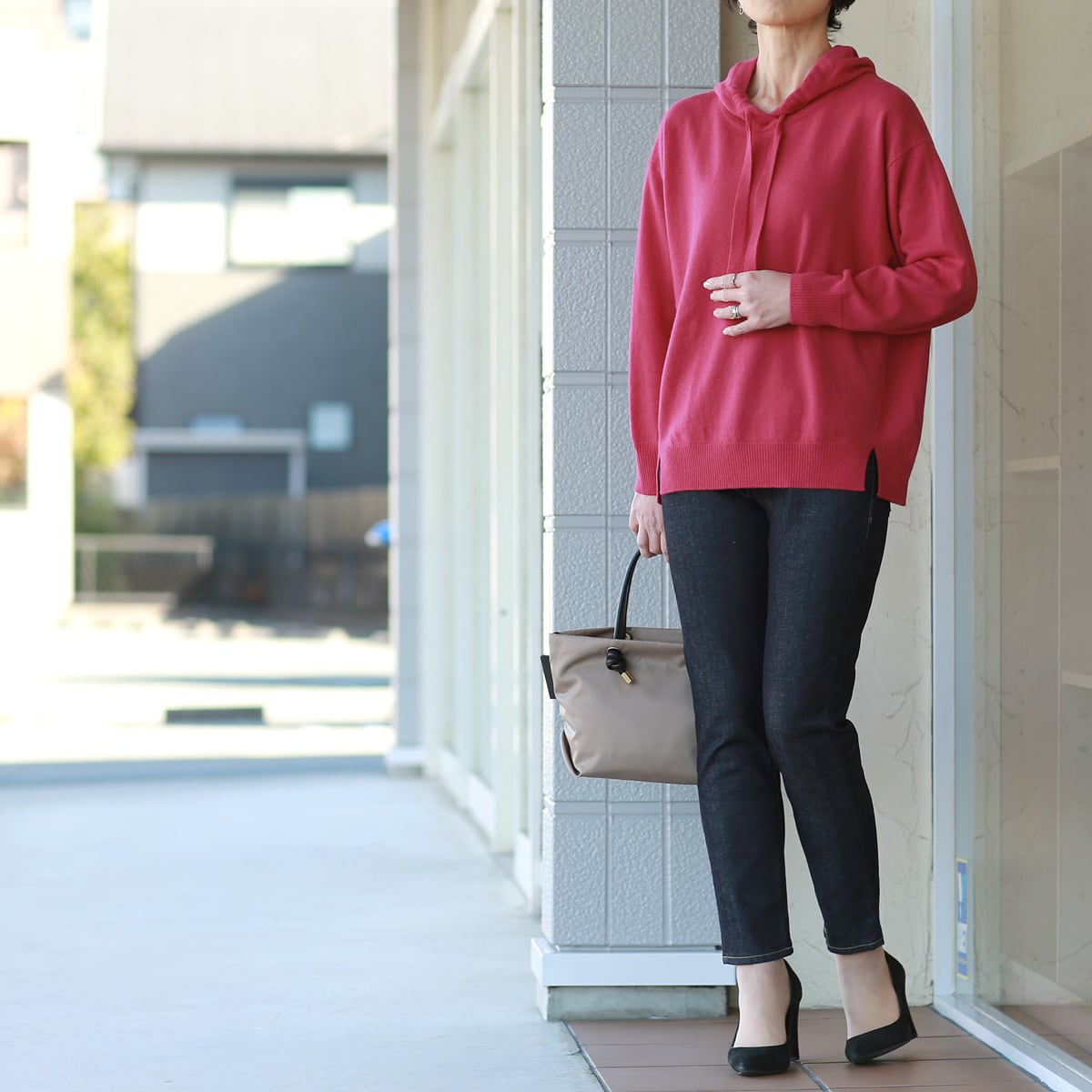 フェミニンで大人なカジュアル感に仕上がっていると思います。また、窮屈さゼロで華奢にも見せてくれるセミコクーンボディーも、