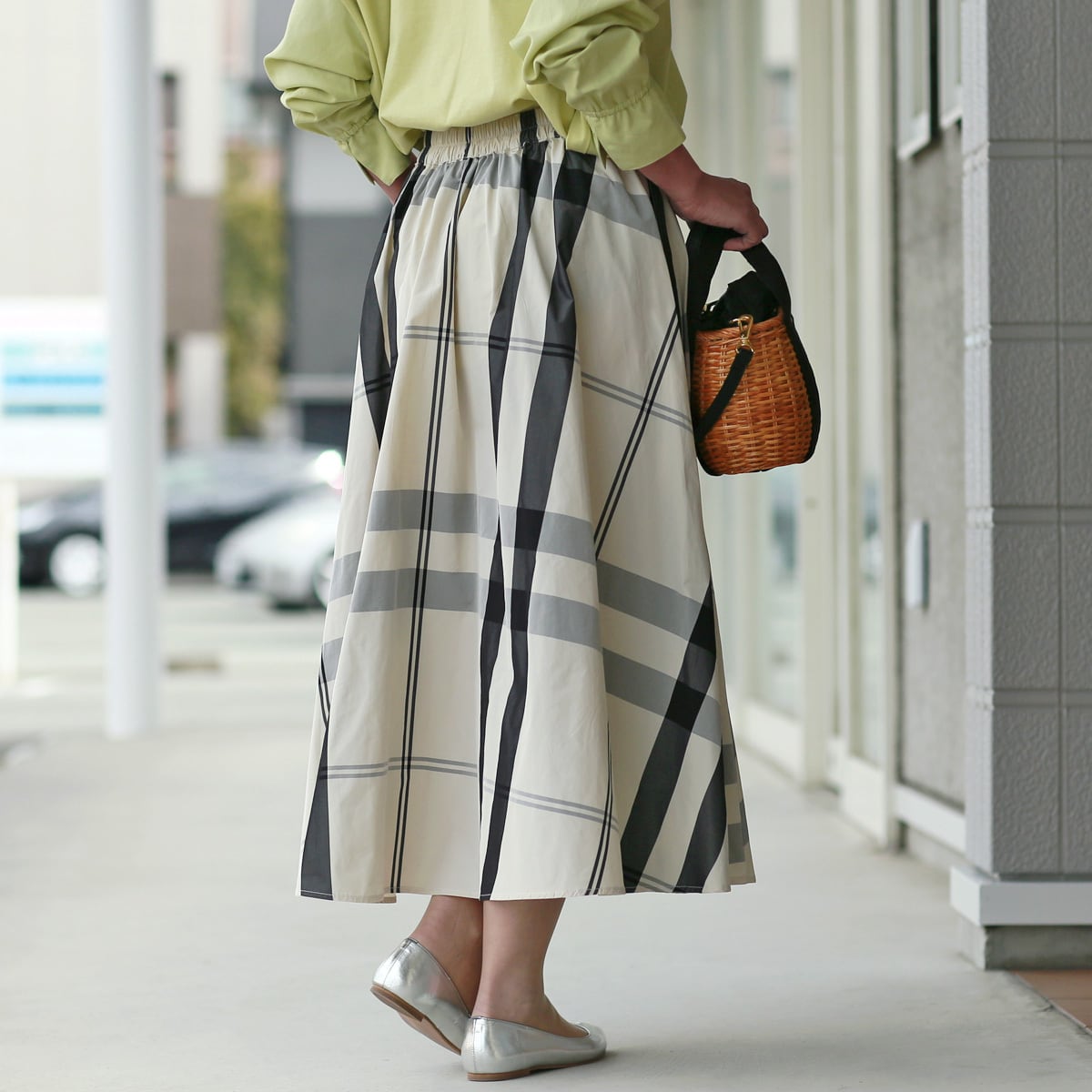【営業日15:00迄のご注文は当日発送可能】TOLNERA (トルネラ) タフタチェック エラスティックウエスト フレアスカート
