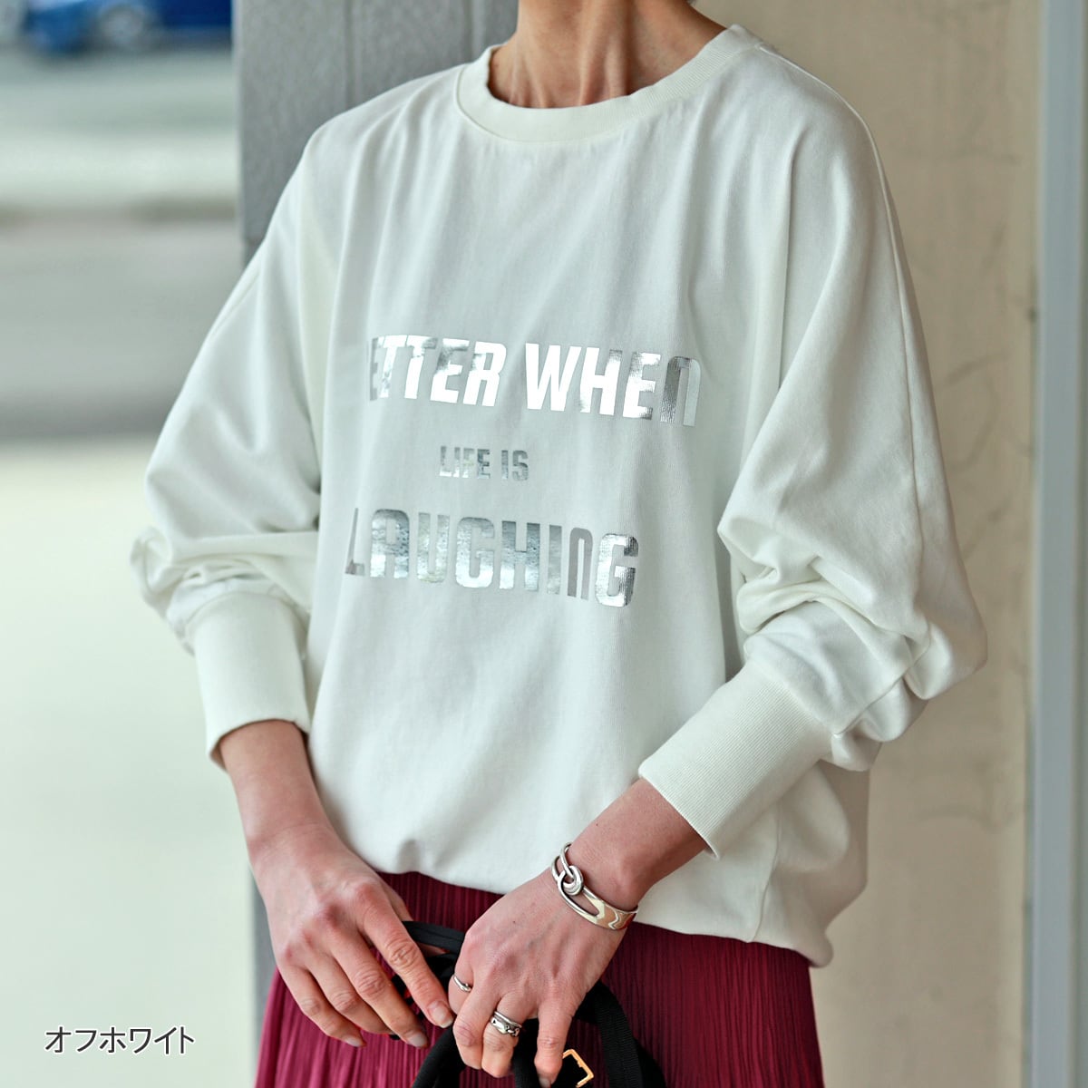 flamingo firm (フラミンゴファーム) グリッターロゴ テーパードドルマン カットソー