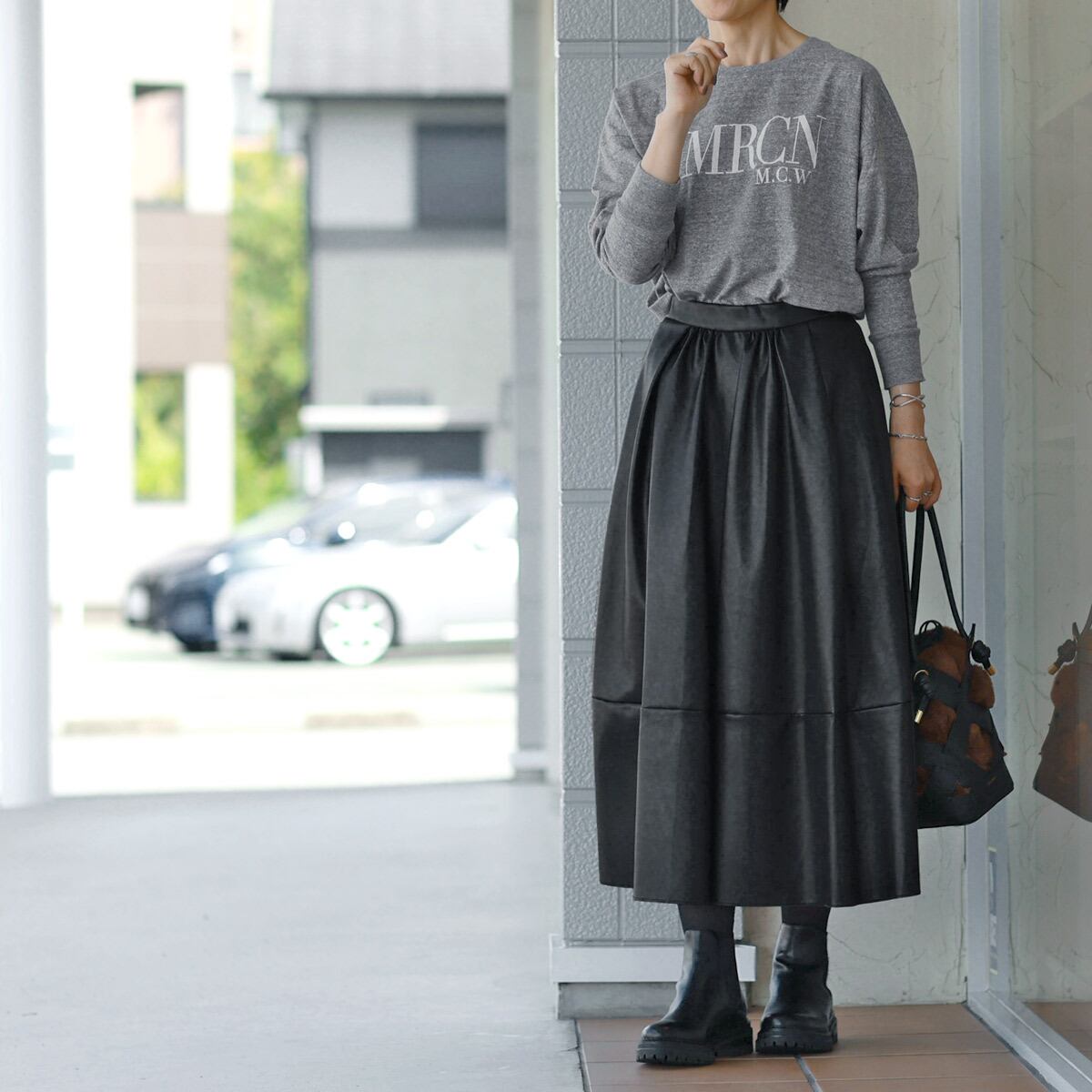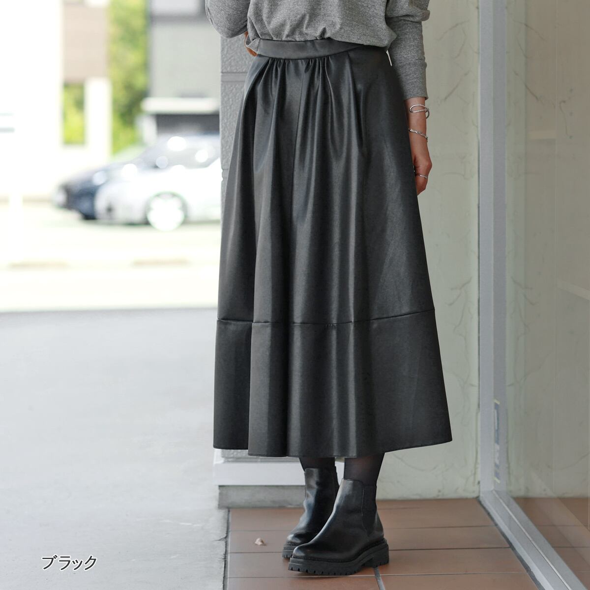 upper hights (アッパーハイツ) エコレザー ギャザーフレアー スカート