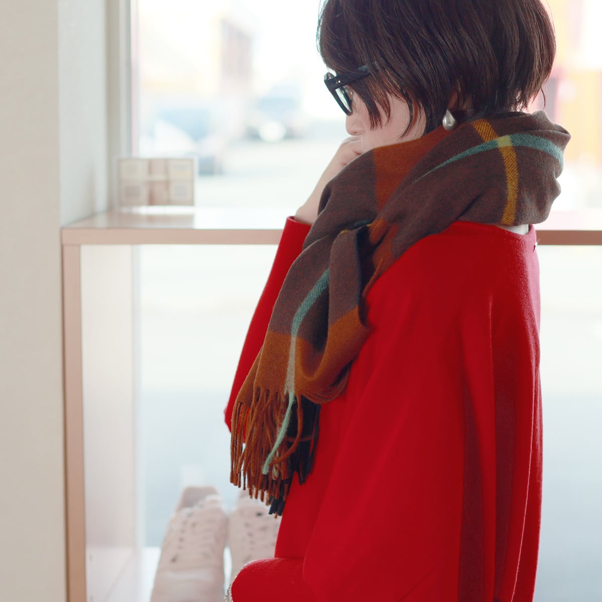 【着用スタッフのリアルボイス】日本では比較的新しいブランドに思われがちですが、実は英国で最も歴史があるテキスタイルメーカーである「JoshuaEllis」のストール。肌触りの良さや暖かさは申し分ありません。(同時展開してますJOHNSTONSとの比較ですとJoshuaEllisの方が新品状態からやや柔らかな印象です)一番のポイントは色使いだと思います。伝統的なチェック柄なのですが、ビビッドなカラーだったり、ニュアンスのある中間色だったり効果的に差した色使いが断然モダンなのが特徴です。ここがJOHNSTONSとの最大の違いだと思います。もう、巻くだけで冬が好きになっちゃうアイテムですね。コレも。(笑)