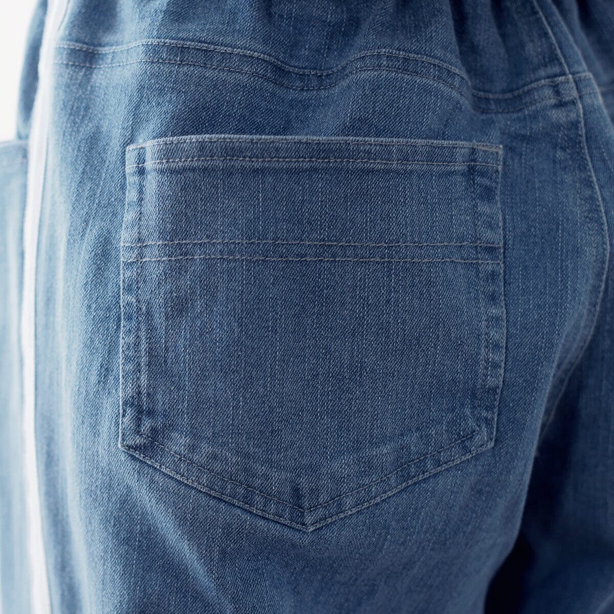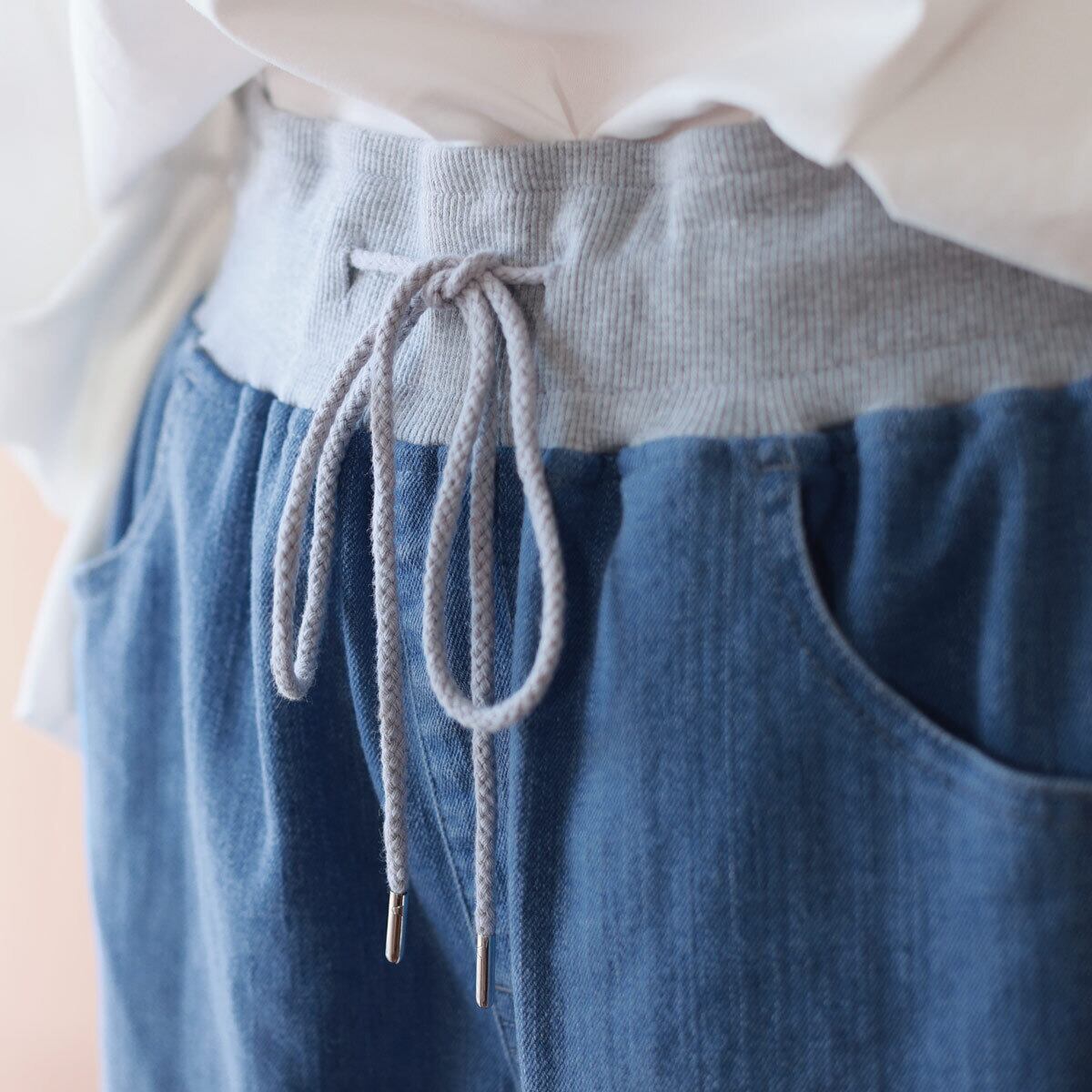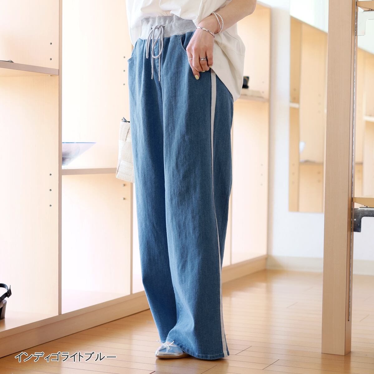 TOLNERA (トルネラ) ストレッチデニム リブウエスト サイドライン ワイドパンツ