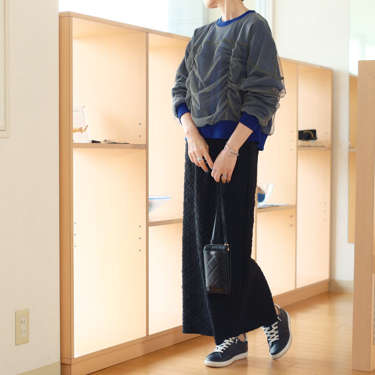 軽やかチュールをレイヤード。