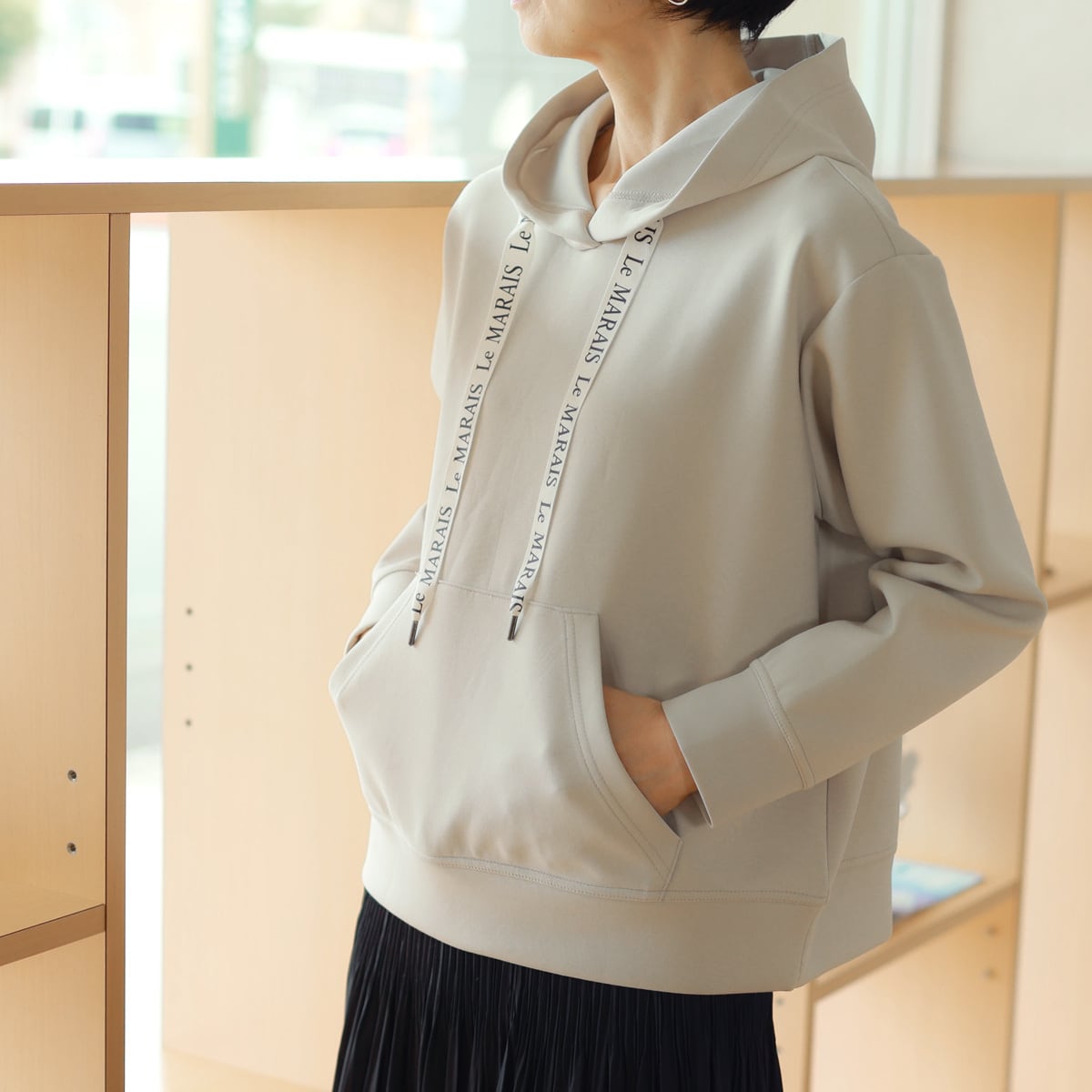 Le MARAIS (ル マレ) ライトウエイトダンボールニット レターテープ フーデットパーカ