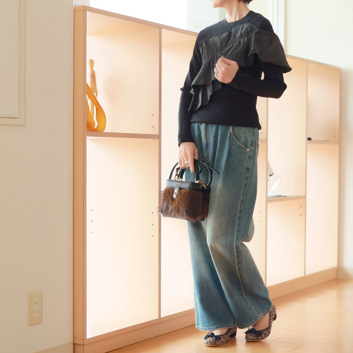 大人っぽい華やぎ感を愉しまませてくれるニットトップス。