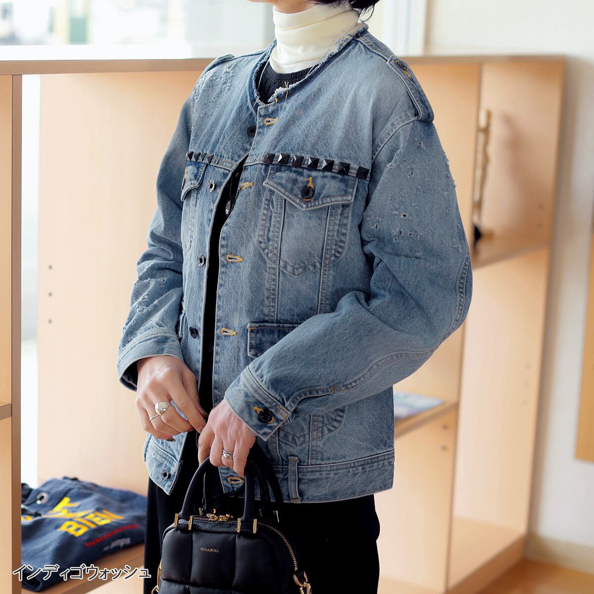 DOUBLE STANDARD CLOTHING (ダブルスタンダード クロージング) クラッシュ&スタッズ カラーレスデニムジャケット
